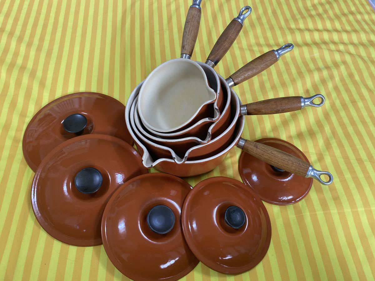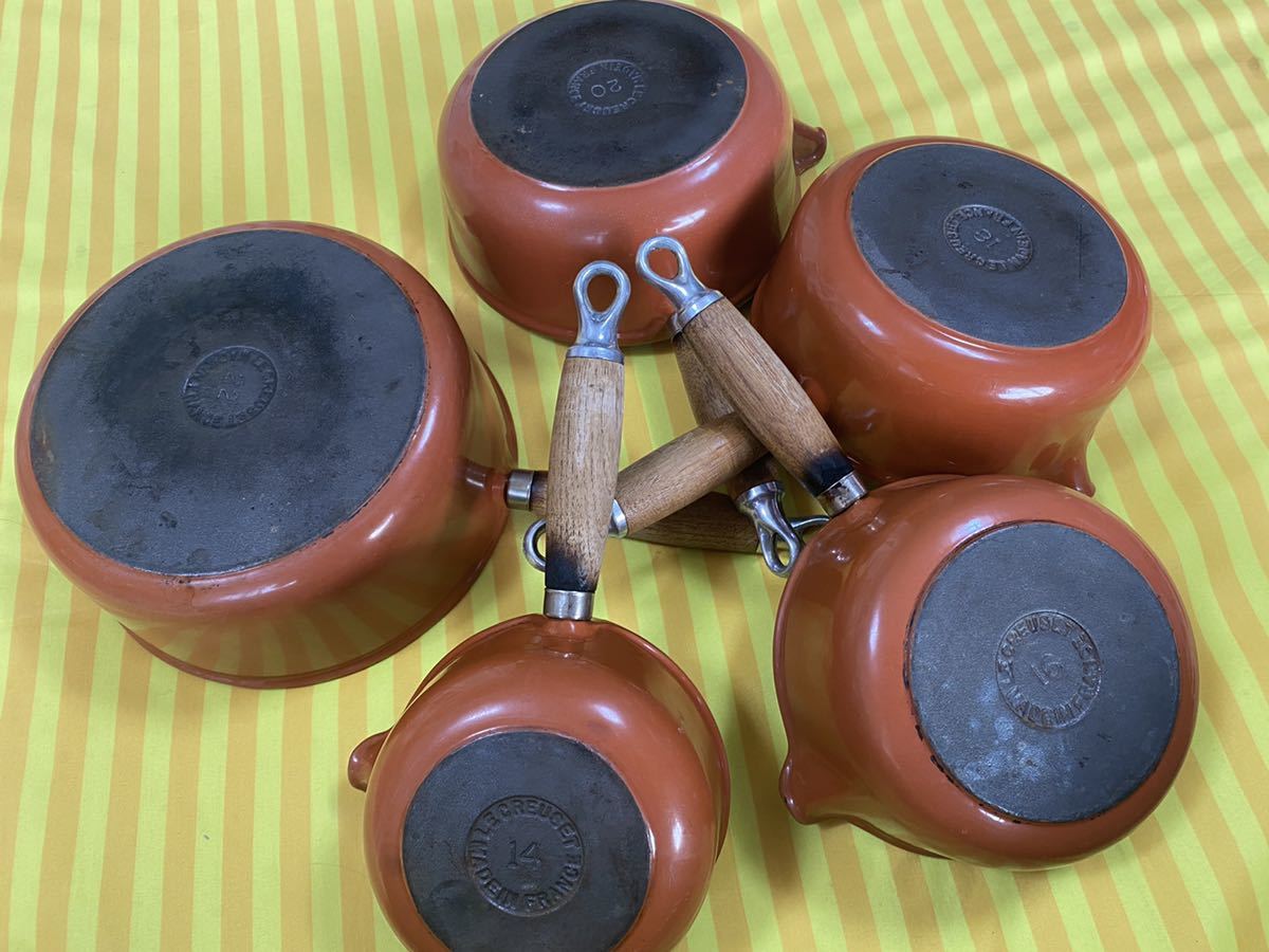 ル・クルーゼ ビンテージ ウッドハンドル 片手鍋 14 16 18 20 22 5個セット LE CREUSET