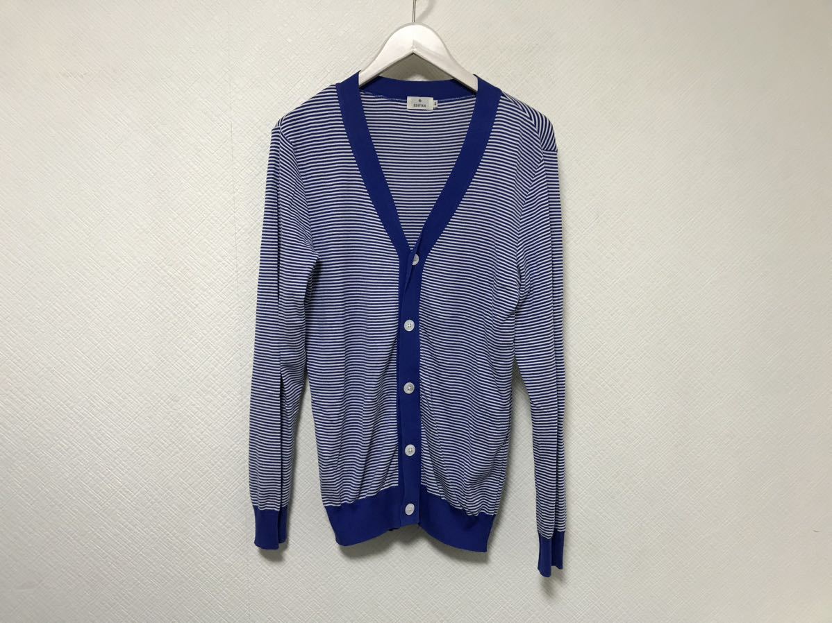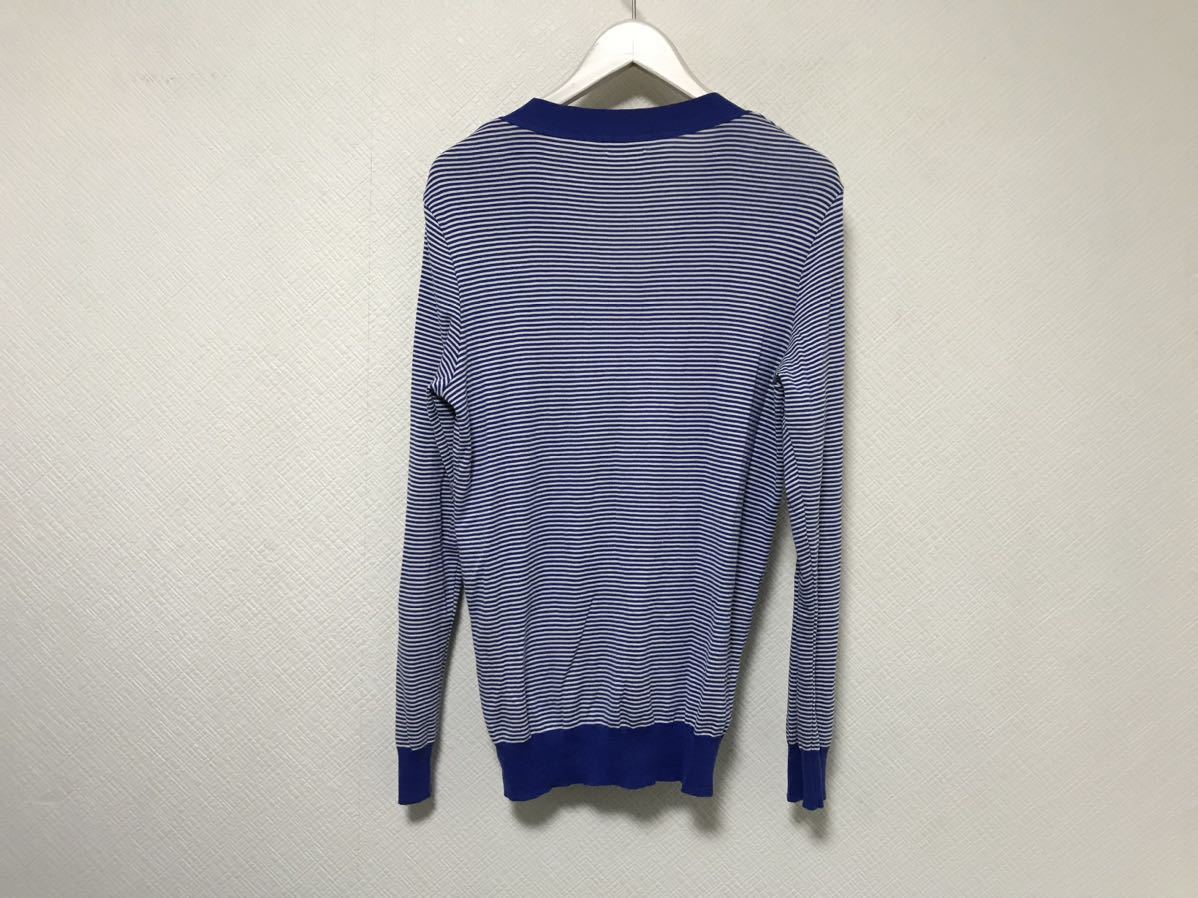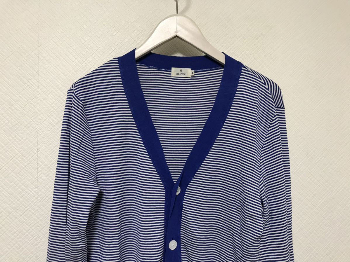 商品名:本物エディフィスEDIFICEコットンボーター柄ニット長袖セーターカーディガンメンズアメカジビジネススーツ青ブルー白46M