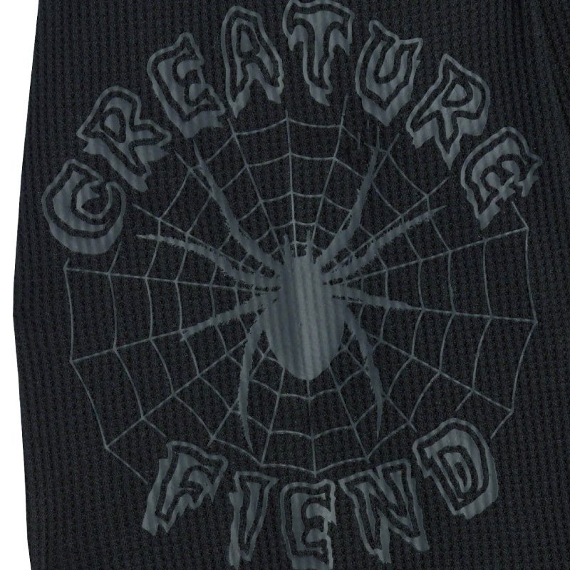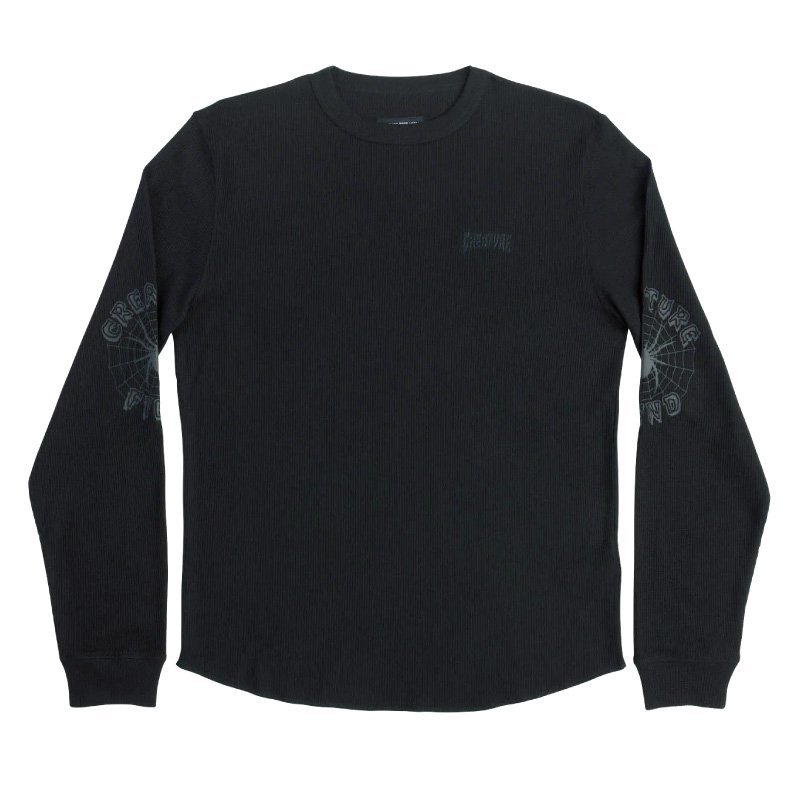 セール 新品 CREATURE クリーチャー サーマル 長袖Tシャツ ロンT スパイダーウェブ 蜘蛛の巣プリント ブラック 黒 L