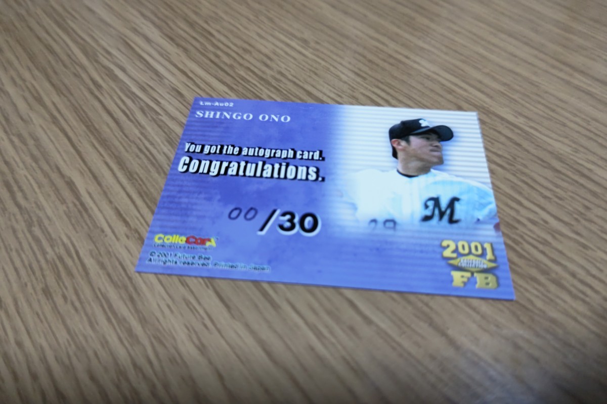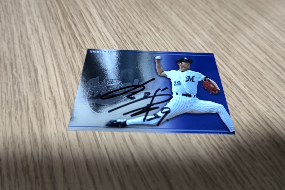 カード自体は千葉ロッテマリーンズの小野晋吾・直筆サインカード、シリアルナンバー00/30。かなりレアなものだと思われます。