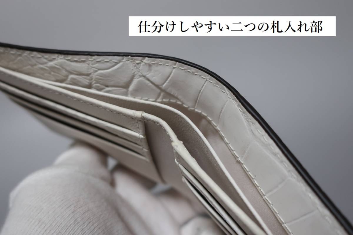 新品 最高級 セレブ専用 クロコダイル 一枚革 センター取り 二つ折り財布 「皮革の宝石」とも呼ばれる高級クロコダイル革を贅沢に使用したお財布です ヨーロッパでも高い評価でセレブから絶大な人気を誇る、ヒマラヤ山脈の雪解けをイメージし、自然が織りなすグラデーションを再現したヒマラヤカラー。 クロコダイルの腹部の革を財布の背の部分に使用し、表面と裏面で左右対称の様な美しい腑模様が広がるセンター取りの仕立てです 革の表面は落ち着いたマット仕上げ、素材感が際立つお仕立てです 札入れは2層に分かれており、内側は柔らかいレザーを使用しています。 サイズ 横 約11cm × 縦 約9cm × 厚み 約2cm 素 材 表革 クロコダイル革 内側 本革 生地 仕 様 札入れ×2 カード収納×6 フリーポケット 2 クロコダイル商品はお品物ごとに腑(模様)が異なりますので、現物の写真を使用しております こちらは写真のものがお届けするお品になります こちらの商品は新品・未使用品ですが保管上に出来た、細かい傷などがある場合がございます 出品時に確認はしておりますが、見落としがある場合もありますので、神経質な方は入札をご遠慮下さい。 |