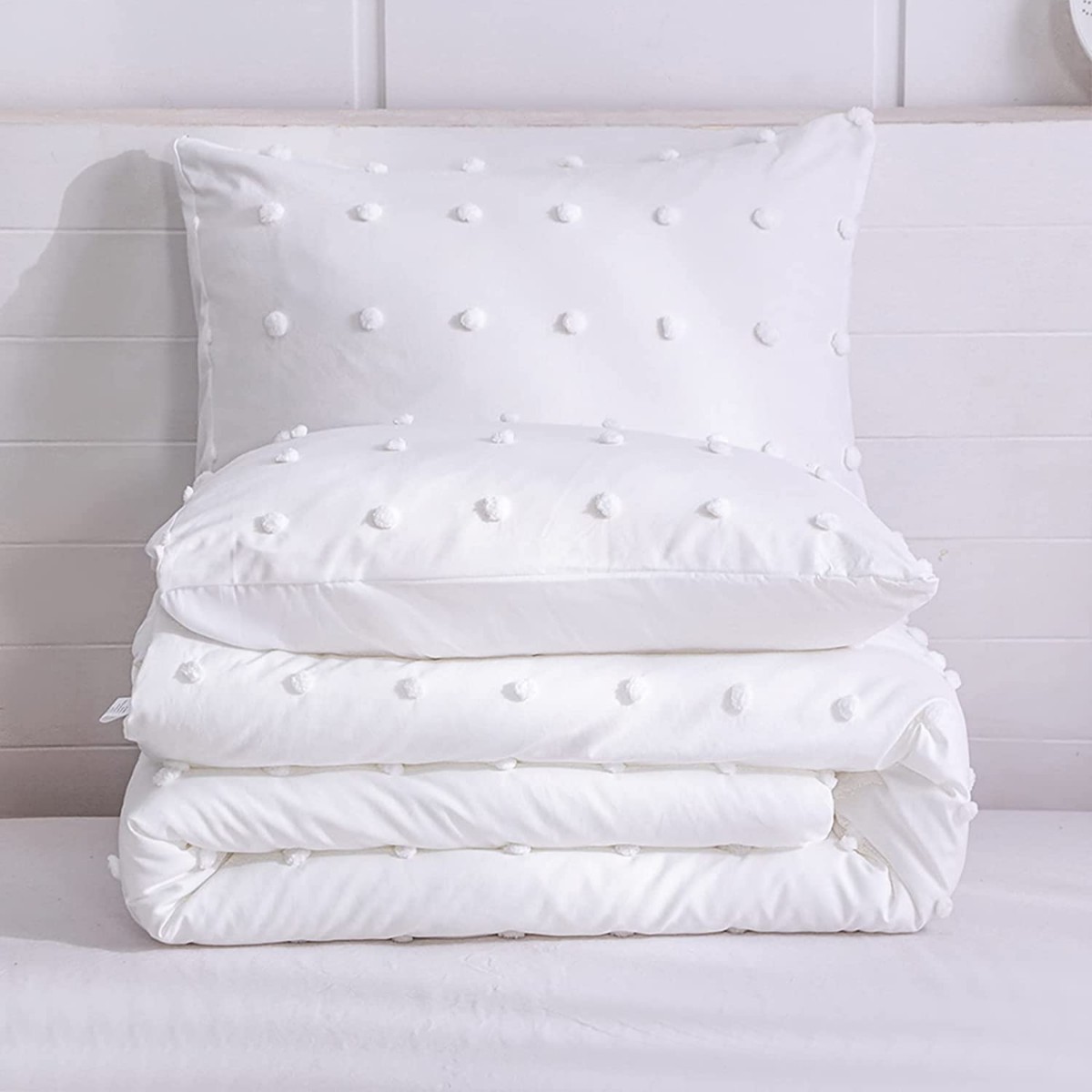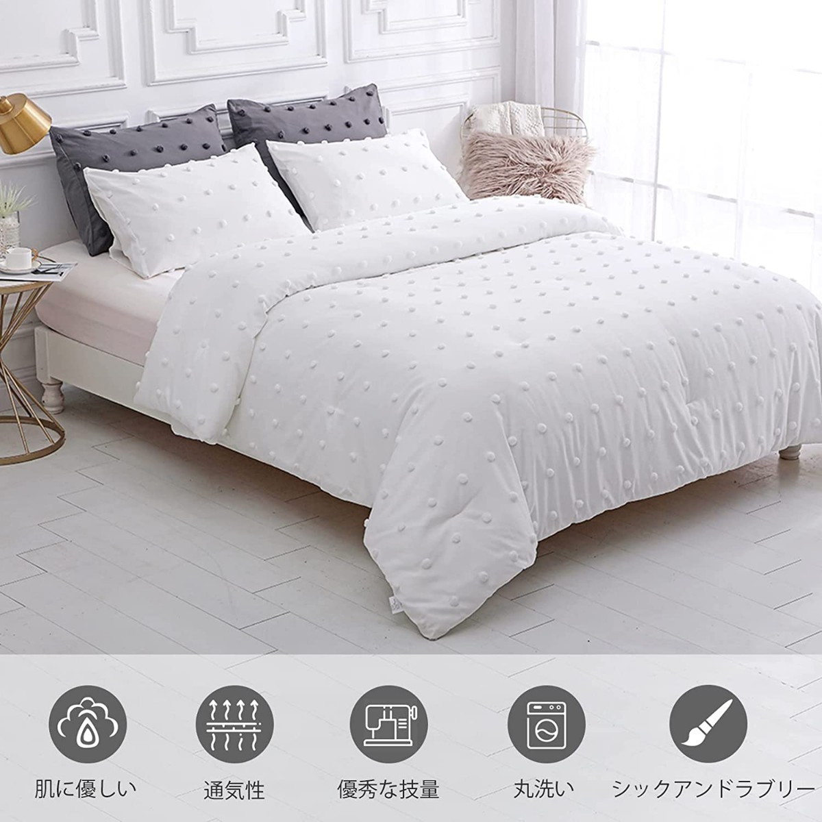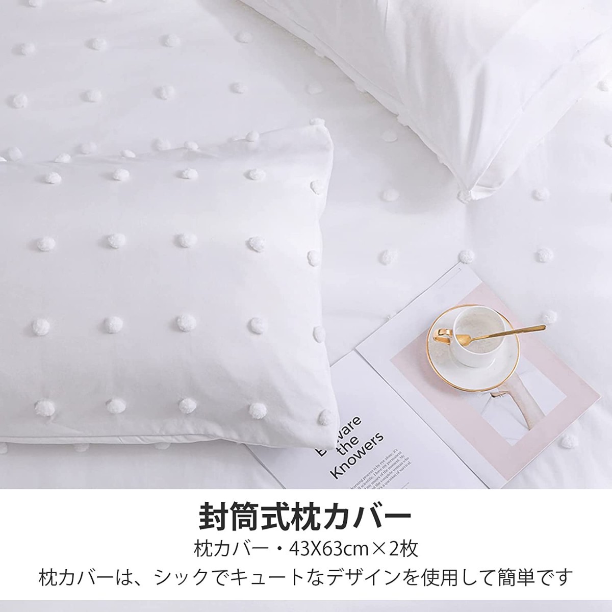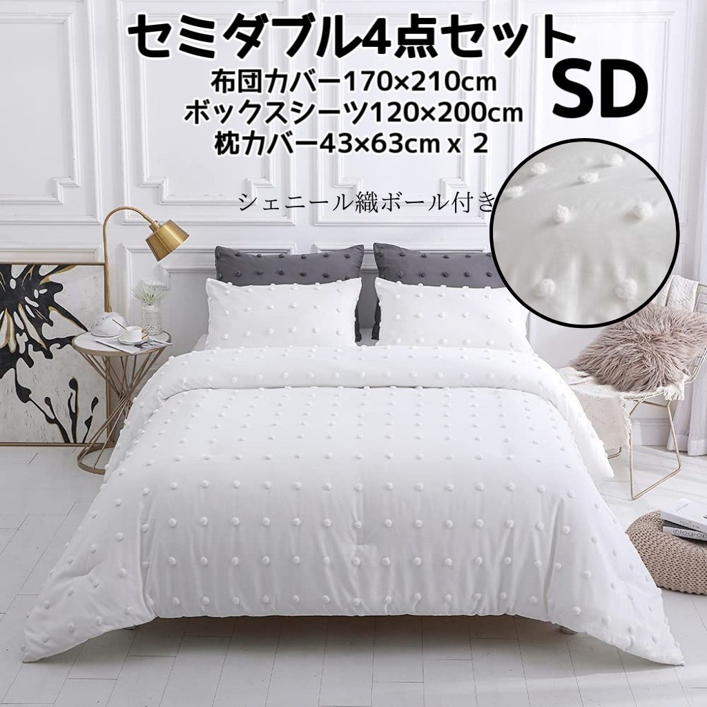 布団カバー セミダブル4点セット 掛け布団カバー かわいいシェニールドットデザイン 肌ざわりがよい 洗い替え 速乾 冬・夏兼用 - 枕カバー ボックスシーツ 敷布団カバー 吸湿性に優れる 子供に合う素材 (セミダブル・4点セット ホワイト)