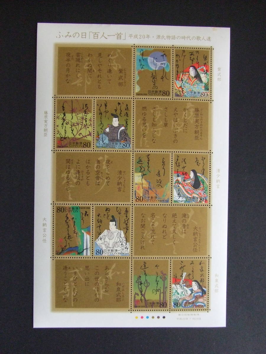 日本切手ー未使用 2008年百人一首80円*10枚 1シート