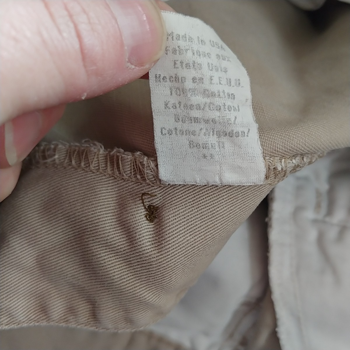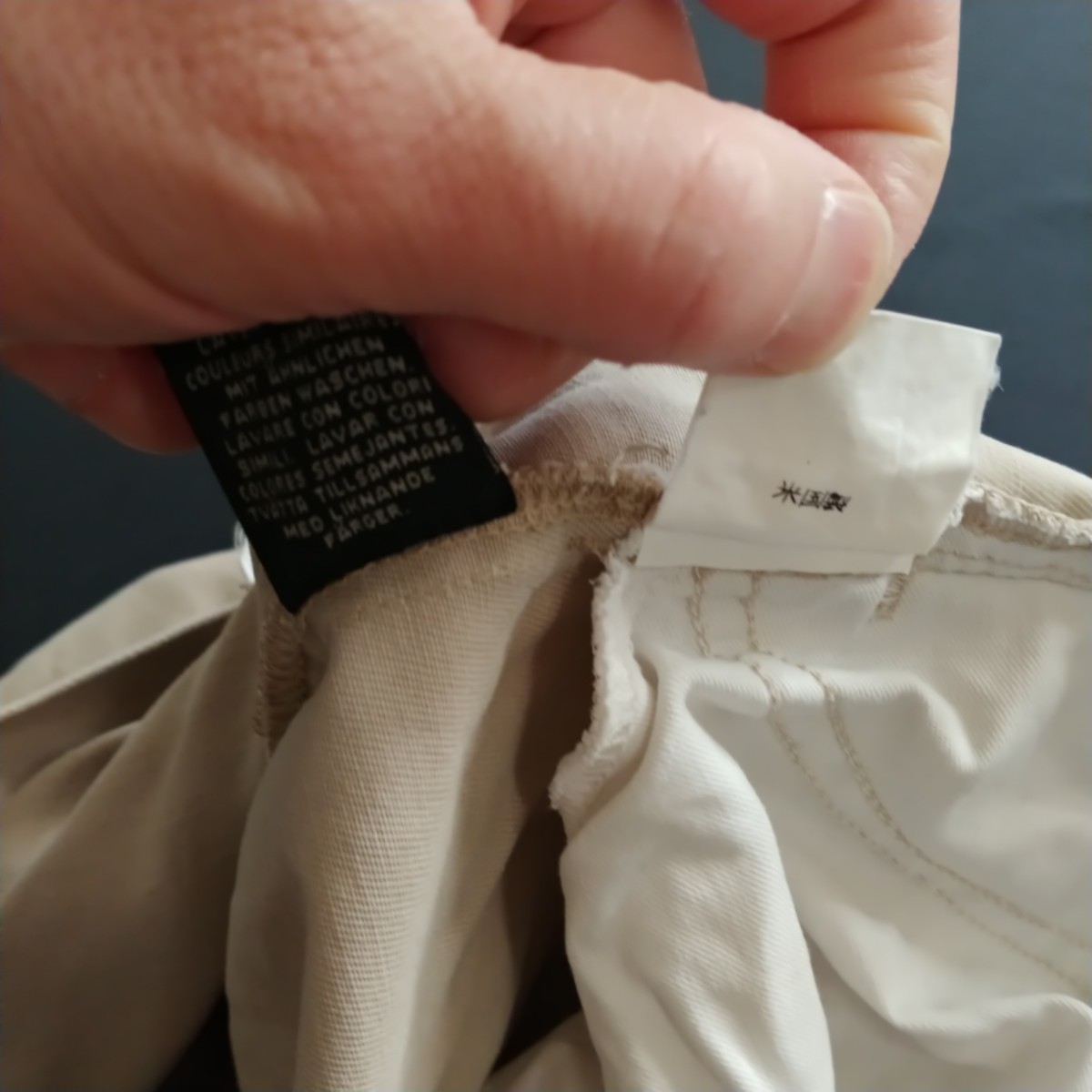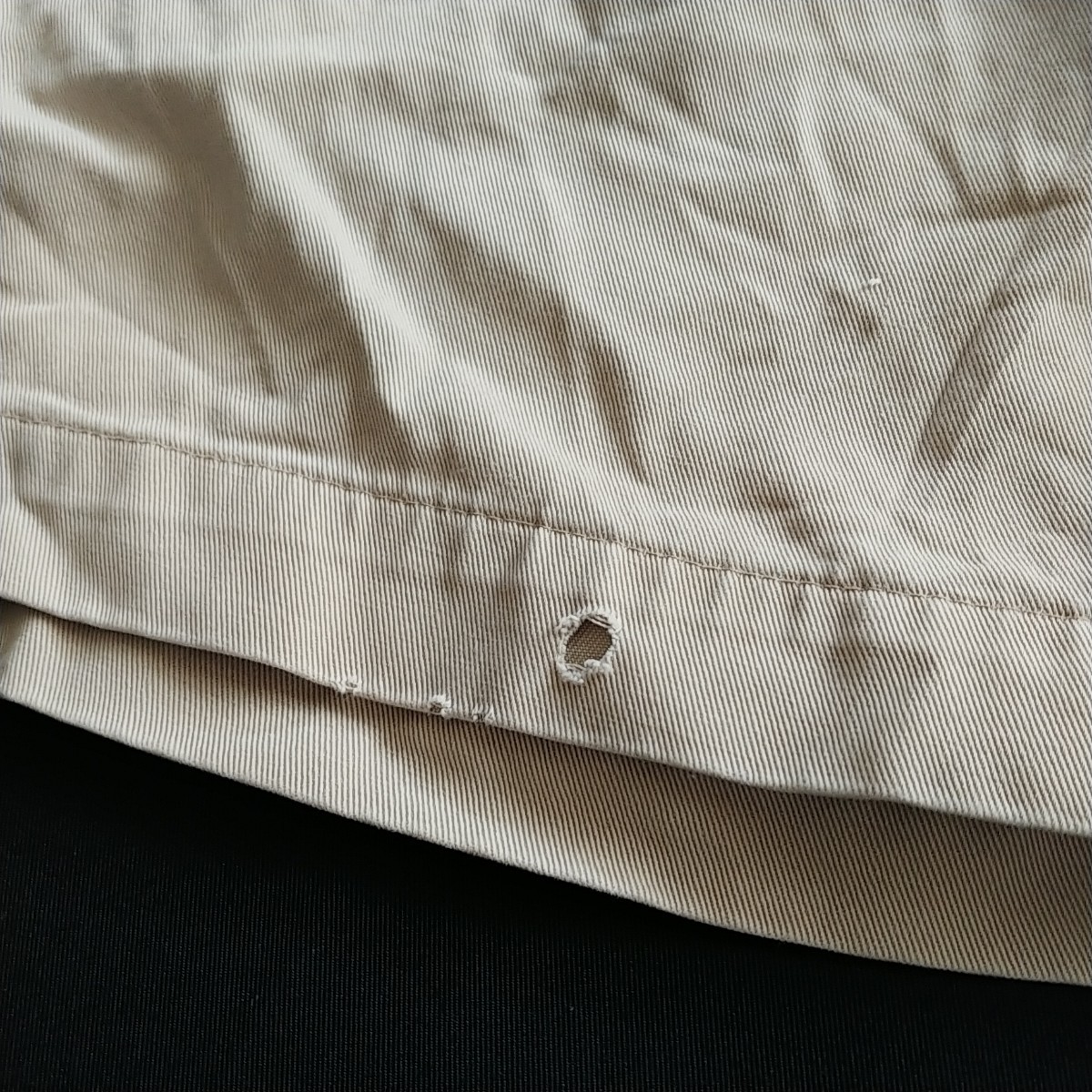 右腿の裾に穴が空いてますが丁度折り返している箇所なので実害はなく良いアクセントになってます。