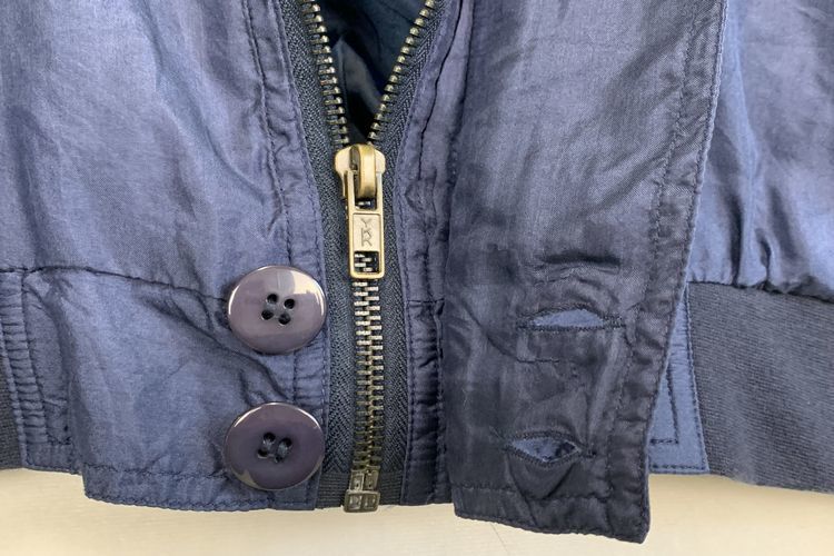 デッドストック!!90sビンテージIntroオールシルクグッドスタイルジャケットMネイビーブルゾンウィンドブレーカーアメカジストリートnr596