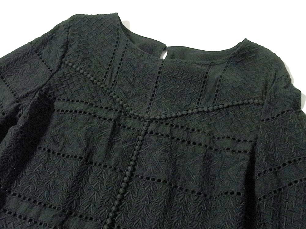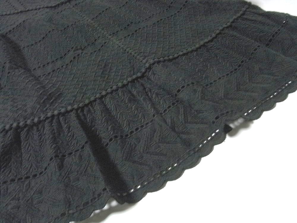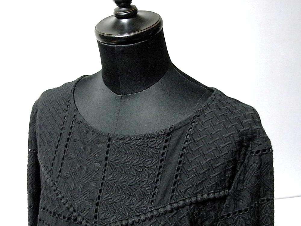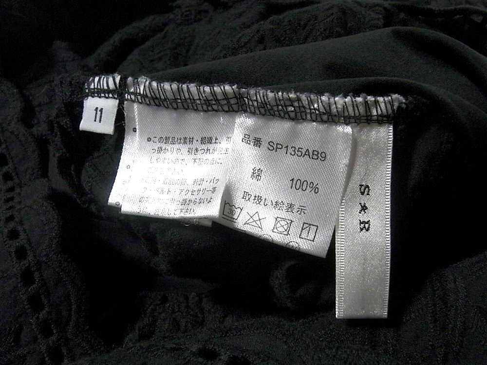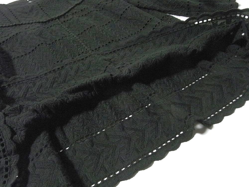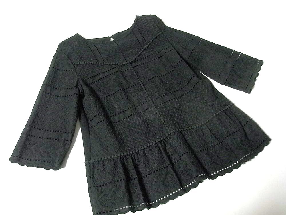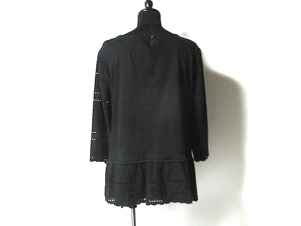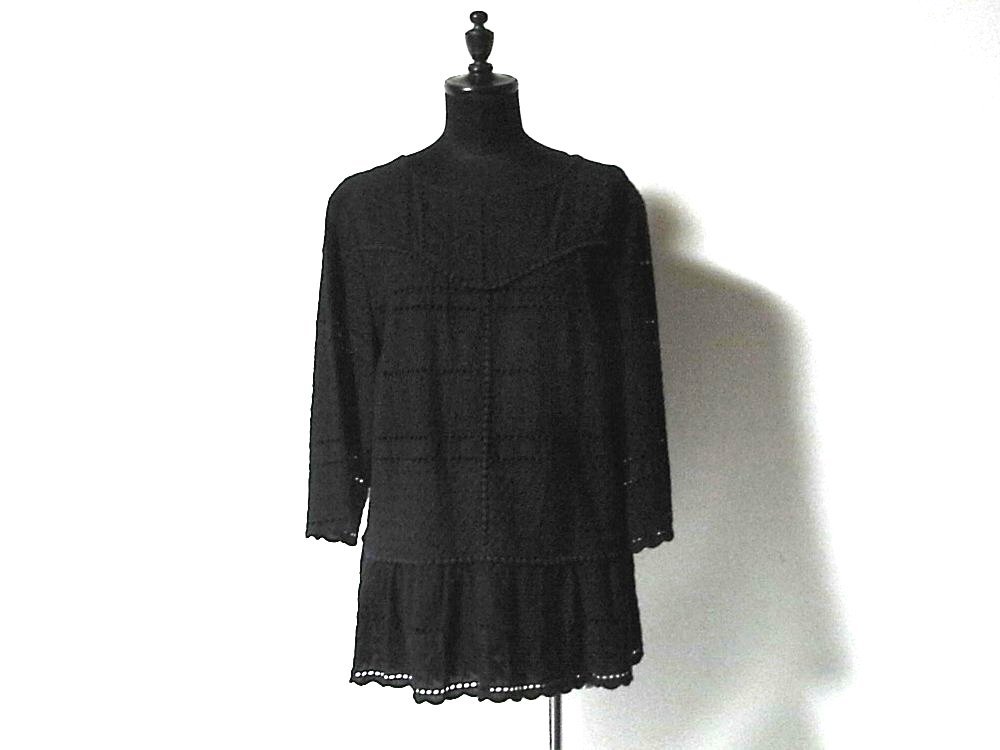 K【Style Ravie スタイルラヴィー】ブラック・レース調色々模様・裾フリル・七分袖・カットソー・11号サイズ!