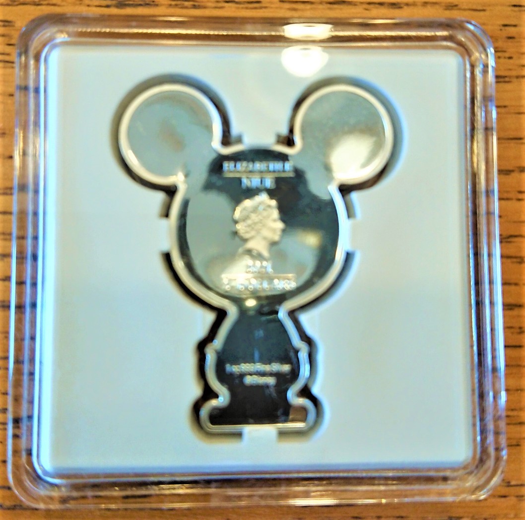 2021(令和3年) ニウエ チビコインコレクション ディズニーシリーズ 第1弾 ミッキーマウス型 1オンス 2ドル プルーフカラー銀貨です。