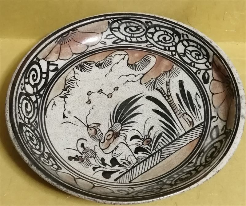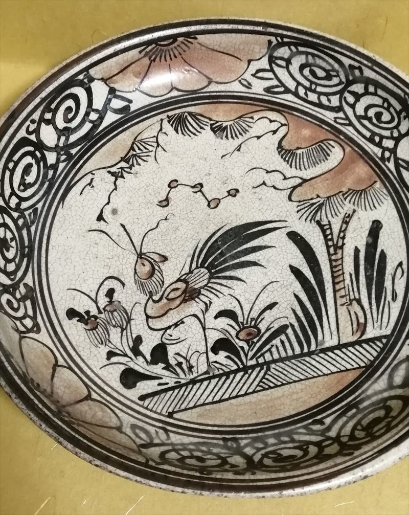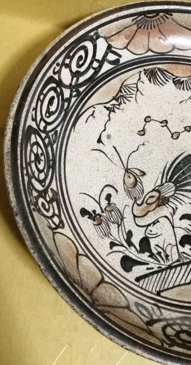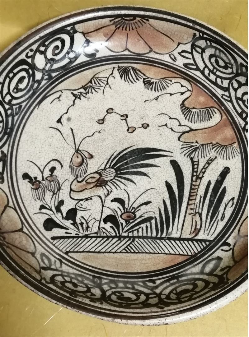 桃山時代~江戸時代 唐津 古志野 絵志野 鳥絵 皿 美術館級!