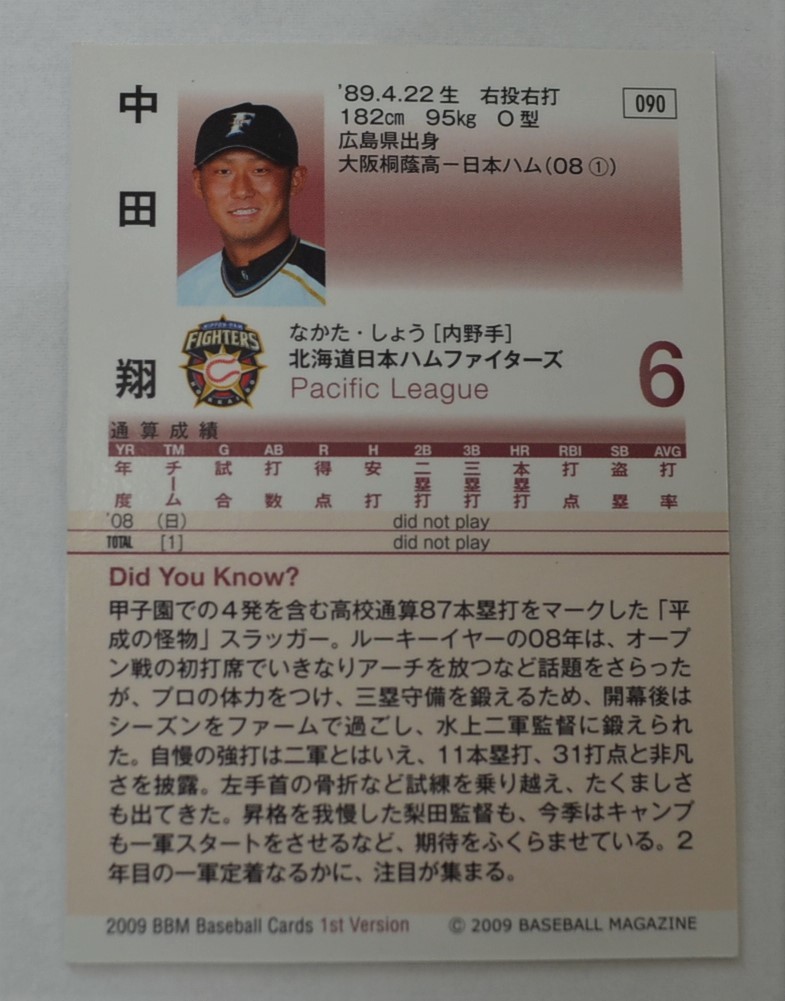 超レア 2009年 中田翔 日本ハム プロ野球 トレーディングカード 美品