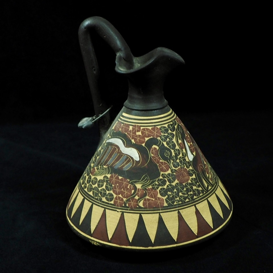 ビンテージレトロ コリントス陶器 ギリシャの陶器 底部直径12cm 高さ15cm 異国のビンテージレトロ感溢れる魅力的な一品 SNC503
