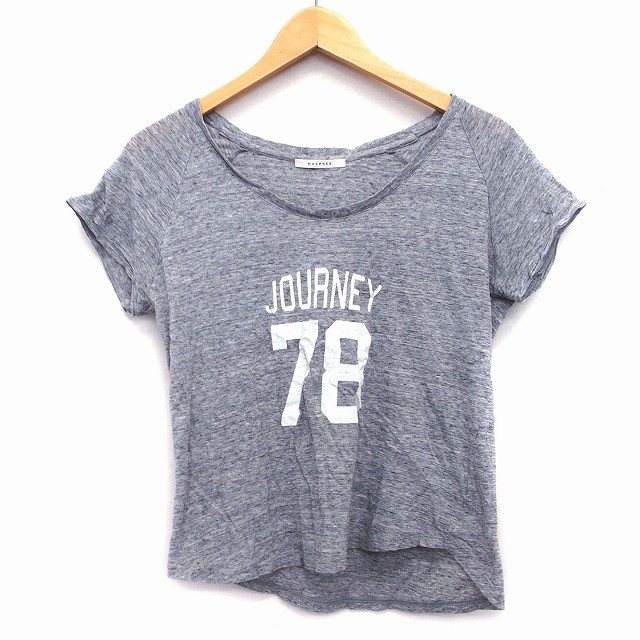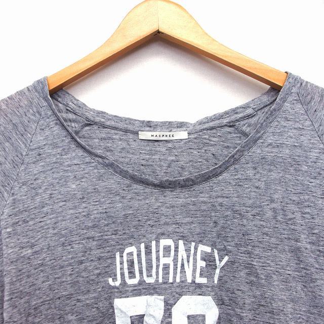 マカフィー MACPHEE トゥモローランド Tシャツ カットソー 総柄 英字 数字 半袖 丸首 コットン 綿 1 グレー 灰 /HT7 レディース