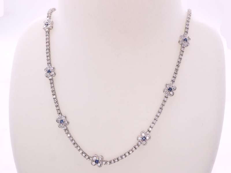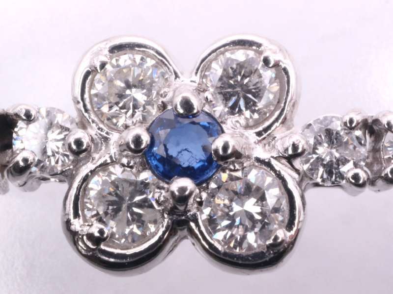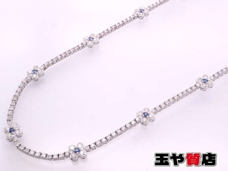 サファイヤ 0.50ct フラワー 7P 美品 ダイヤ 7.05ct デザイン ネックレス pt850 プラチナ