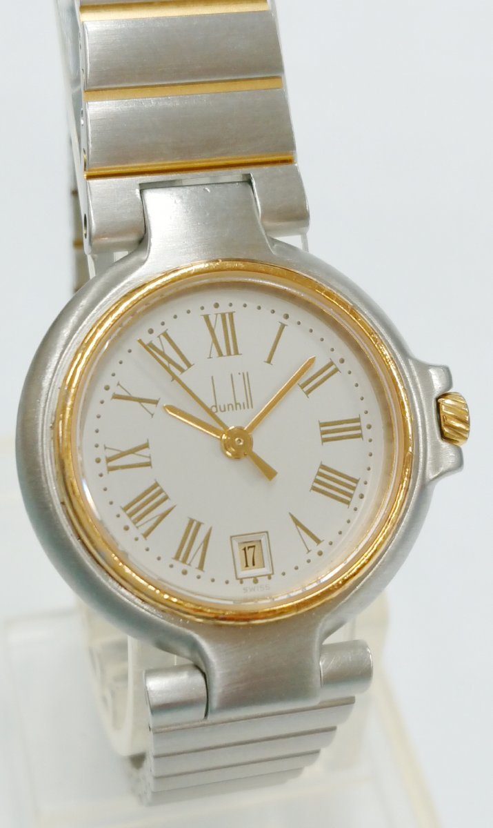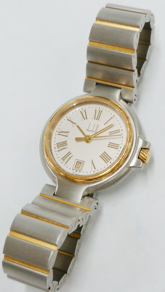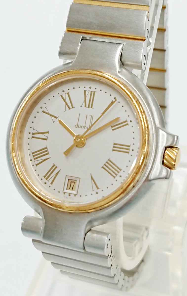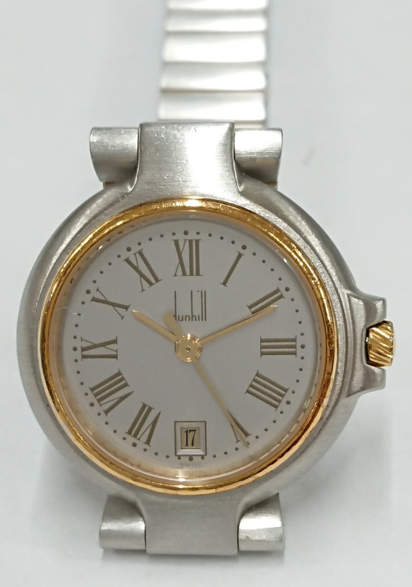 稼働品!! dunhill/ダンヒル ミレニアム クォーツ 日付表示 グレー色系文字板 レディース 婦人用 ウォッチ 腕時計 USED品*
