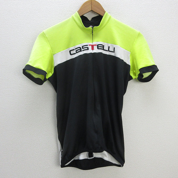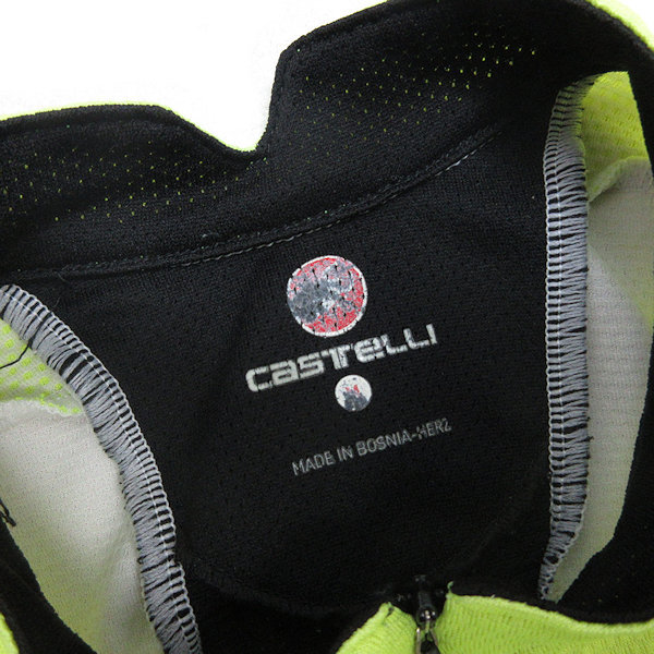 k■カステリ/CASTELLI 半袖フルジップサイクルジャージ/ウェア【M】黄緑黒/MENS■73【中古】