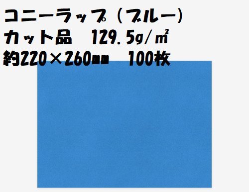 コニーラップ(ブルー)約220×260mm(必要なサイズにカットした残りですので約とつけております) 100枚分類 ペラ紙厚さ 129.5g/m2カラーバリエーションが豊富なコニーラップ。 深みのあるキレイなブルー!封筒などにも使われる、濃い色のカラークラフト紙です。 環境負荷の少ない無塩素漂白パルプを主な材料としています。 鮮やかで深みのある色彩展開も大きな魅力です。原色に近いはっきりとした色が印象的な、カラークラフト紙です。他のクラフト紙と同様に、紙も丈夫なので、マチ付き封筒や大きな封筒にも仕様されています。ざらっとした質感もクラフト紙の特徴です。当店では紙手提げを作るのに仕入れました。しっかりした材質ですので、ハンドメイドにもおすすめです。