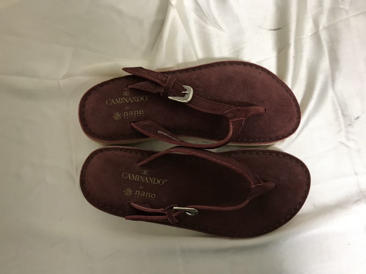 商品名:美品本物ナノユニバース×カミナンドCAMINANDO本革スエードレザーサンダルビジネス靴レディース23.5cmアメカジスーツ7赤メキシコ製