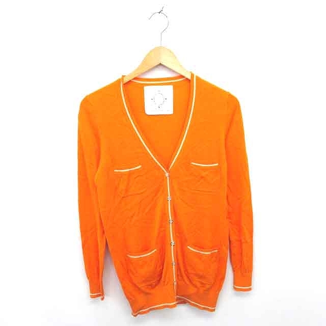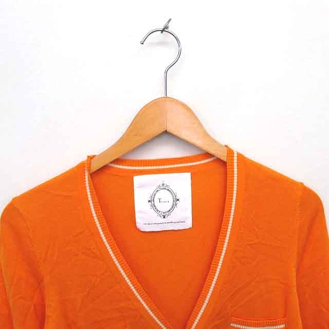 ティアラ Tiara カーディガン ニット Vネック 薄手 シルク混 リネン混 長袖 オレンジ /TT10 レディース