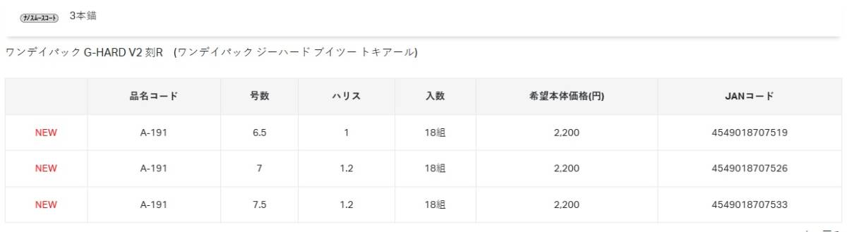 ワンデイパック G-HARD V2 刻R 7号 3本錨 |