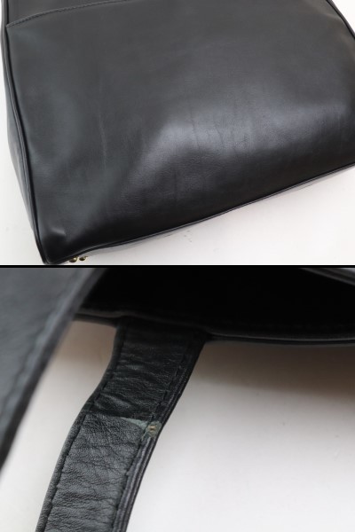 状態 | 少々の使用感はありますが、全体的にはきれいなお品になります。 背面ポケットに少々の汚れがあり、背面部にシワ感があります。(画像有り) 底部、持ち手部に僅かにスレがあり、持ち手部に折り癖、僅かに亀裂があります。(画像有り) タグに折れ、スレがあり、ポーチの金具に変色、汚れがあります。(画像有り) 状態は画像を参考にお願いします。 |