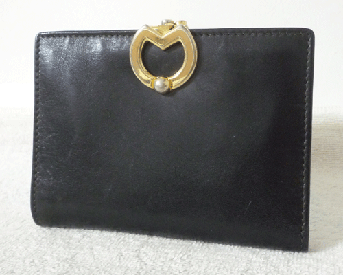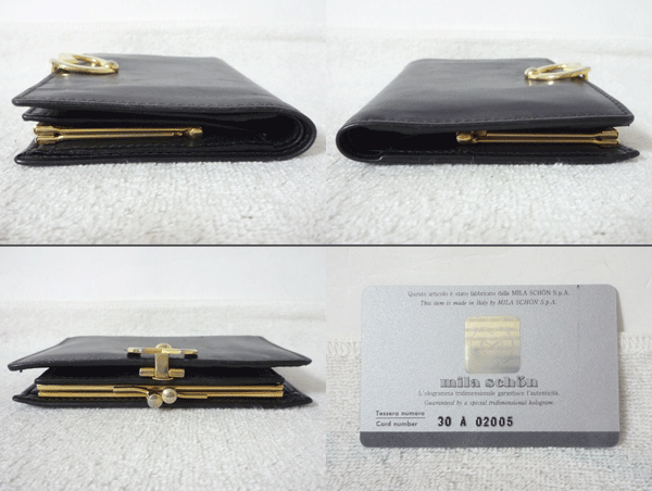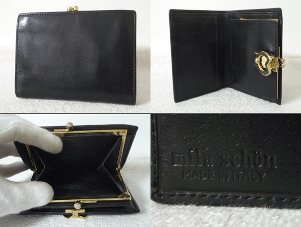| ミラショーン miraschon レザー ブラック 黒 がま口 二つ折り 財布 ウォレット レディース | ||