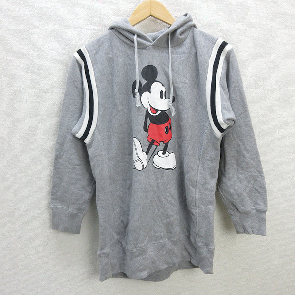 k■エフエーティー/FAT×Disney ミッキープリント プルオーバーパーカ【SKINNY】灰色/MENS■155【中古】
