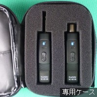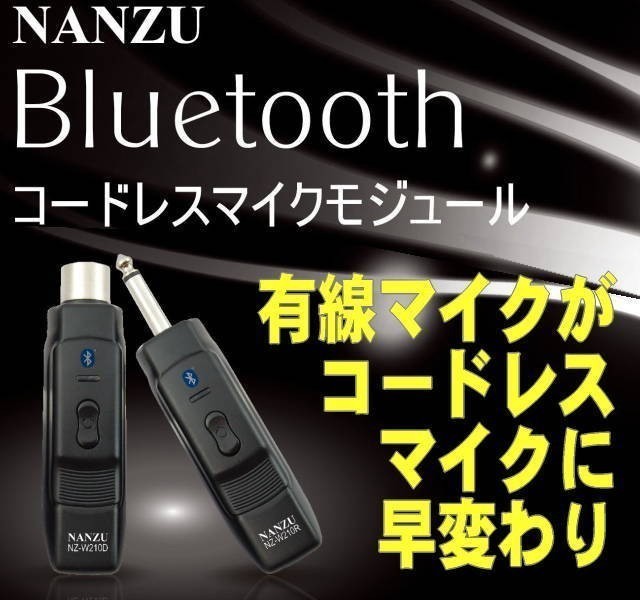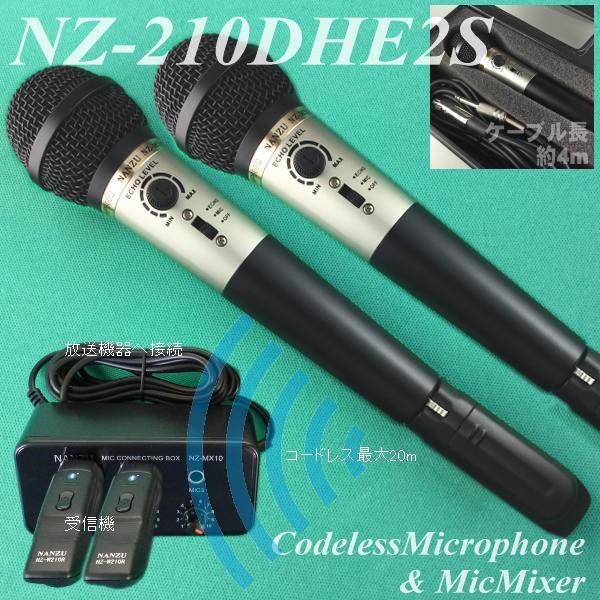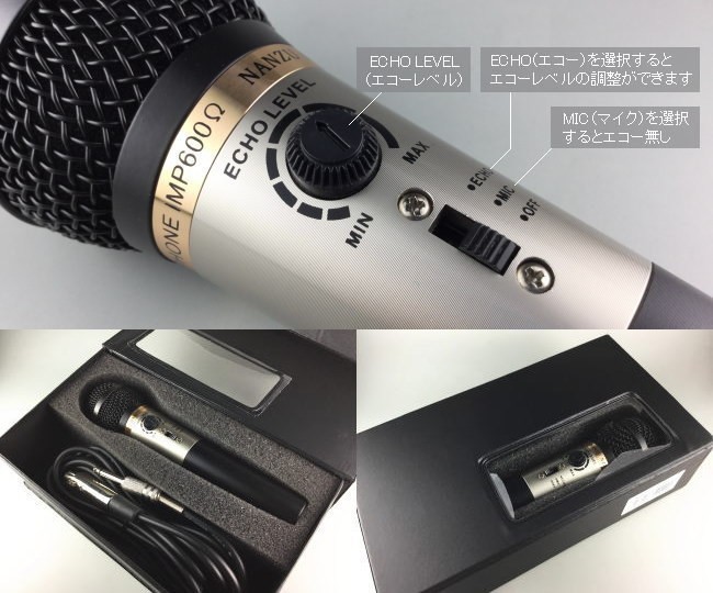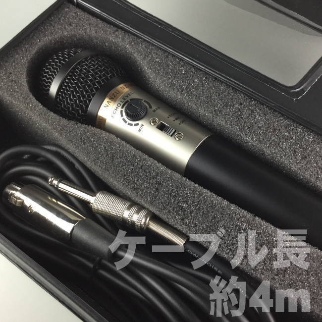 有線のエコーマイクにコードレスモジュールを使用して、ワイヤレスマイクとして使用できるようになります。3つのマイク入力を兼ねた簡易マイクミキサーにより2本のワイヤレスマイクを同時使用でき、さらにもうひとつのジャックに有線マイクを接続できます。エコーマイクを有線で使用する場合は、4mのケーブルが付属していますので、ワイヤレスマイクとしても有線マイクとしても使用できます。