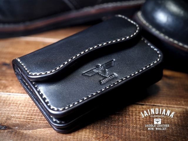 | 手縫い サドルレザー・ミニウォレット ブラック ミニ財布 MIW-B | ||||