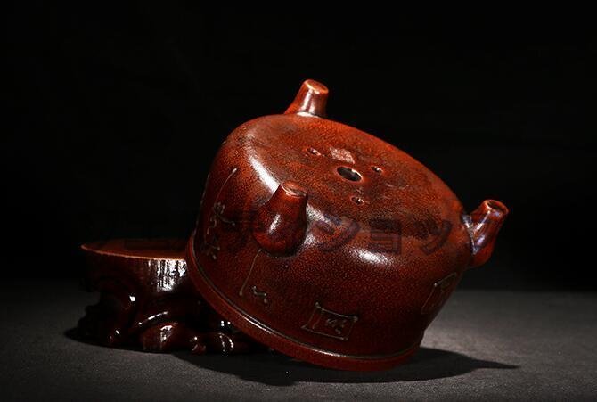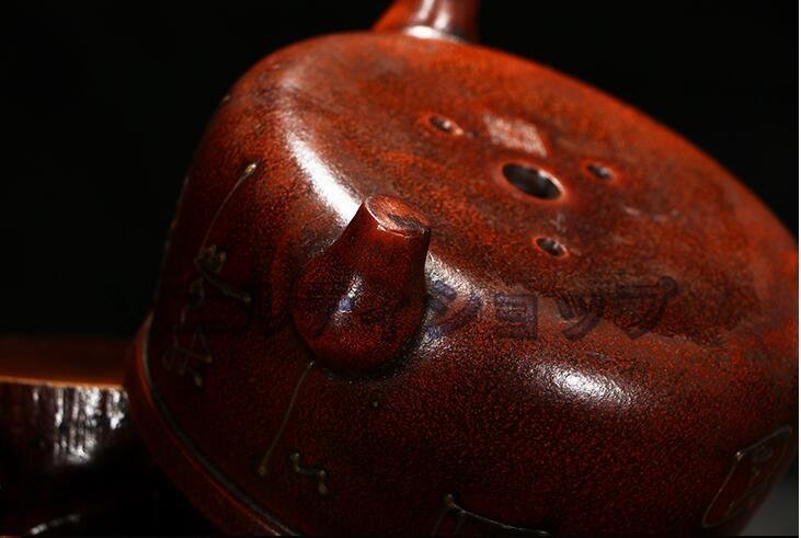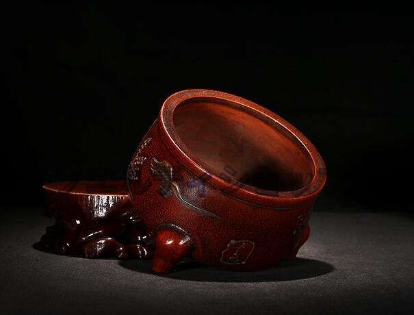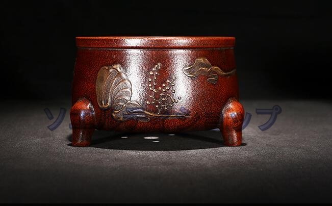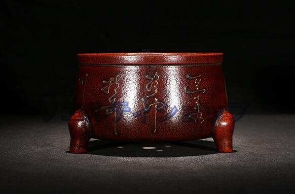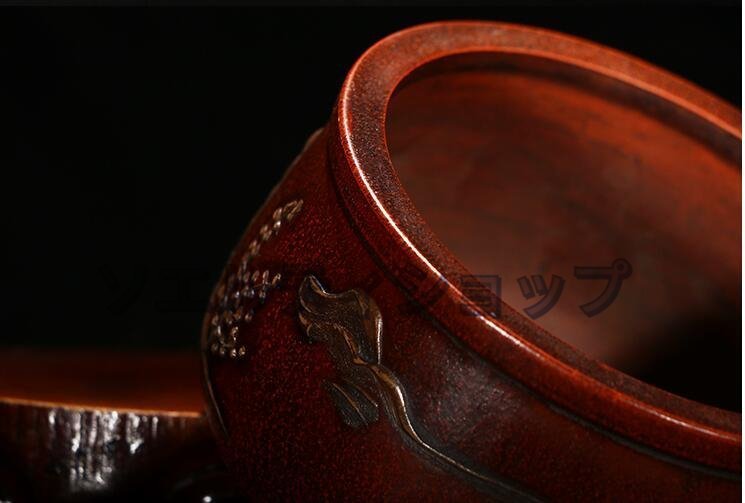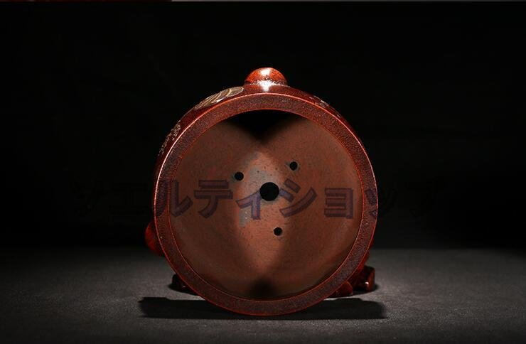 紫砂紫泥鉢角鉢山水レリーフ紫泥手作り高さ7.5口径11.5*深6 cm