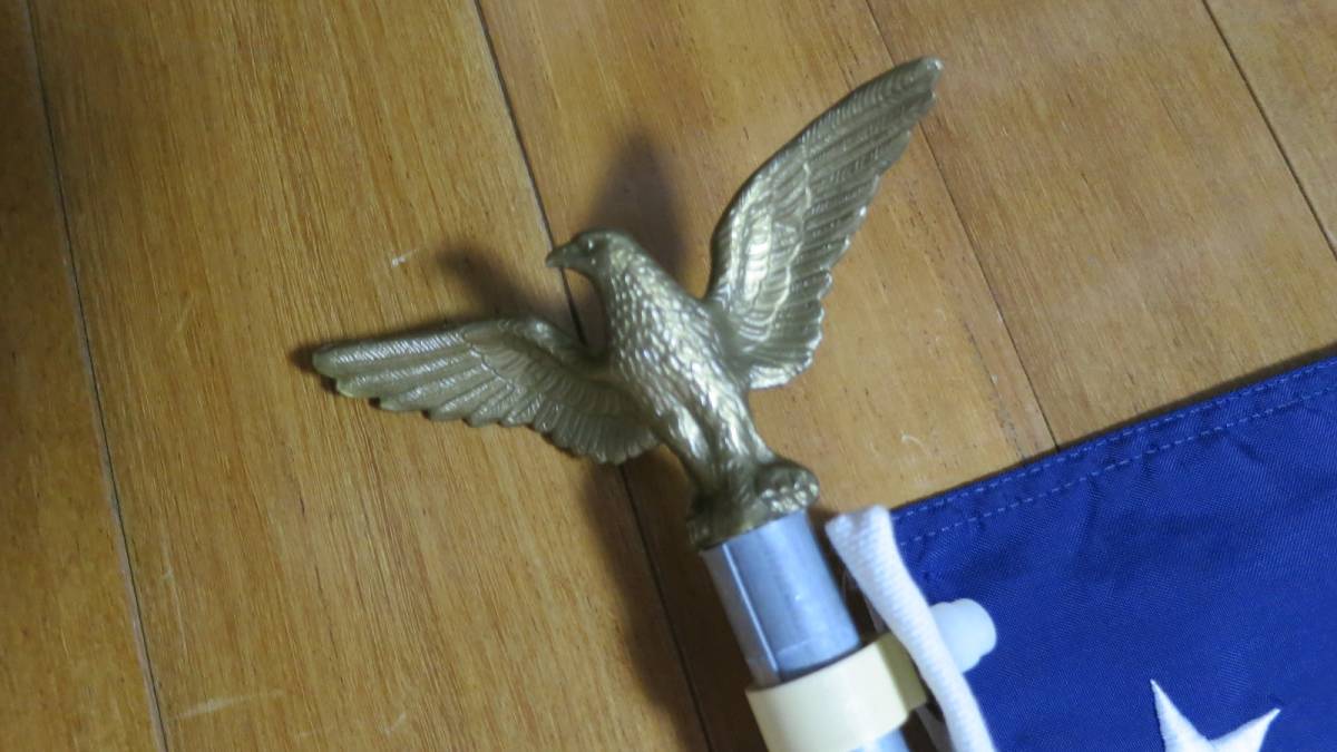 | ★商品説明★ | ◎星条旗(刺繍)158㎝x90㎝&ポール(3本継ぎ)175㎝ B177 ◎旗サイズー158㎝x90㎝。 ポールサイズー175㎝。(61㎝x3本)スチール製。 鷲(プラスチック製) ◎旗に多少の目立たない汚れ等あり。 ◎画像にあるものがすべてです。 ◎ゆうパック100サイズ。 ※ ◎放出品付き見落とし等ある場合もありますので、ノークレーム、ノーリターンでお願いします。 ◎神経質な方、または完璧な物を求めてる方は入札をお控え下さい。 ◎中古品だという事を十分ご理解の上ご入札ください。 ※フラッシュ撮影のため実際の画像とは多少違って見える場合もありますのでご了承ください。 雰囲気がでています。 |