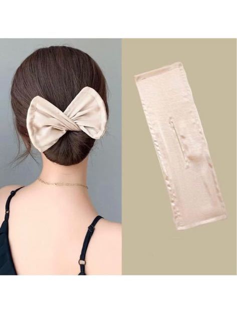 88flix デフトバン お団子ヘアメーカー リボン デフトバンド ヘアアクセ デフトバンド (ベージュ)