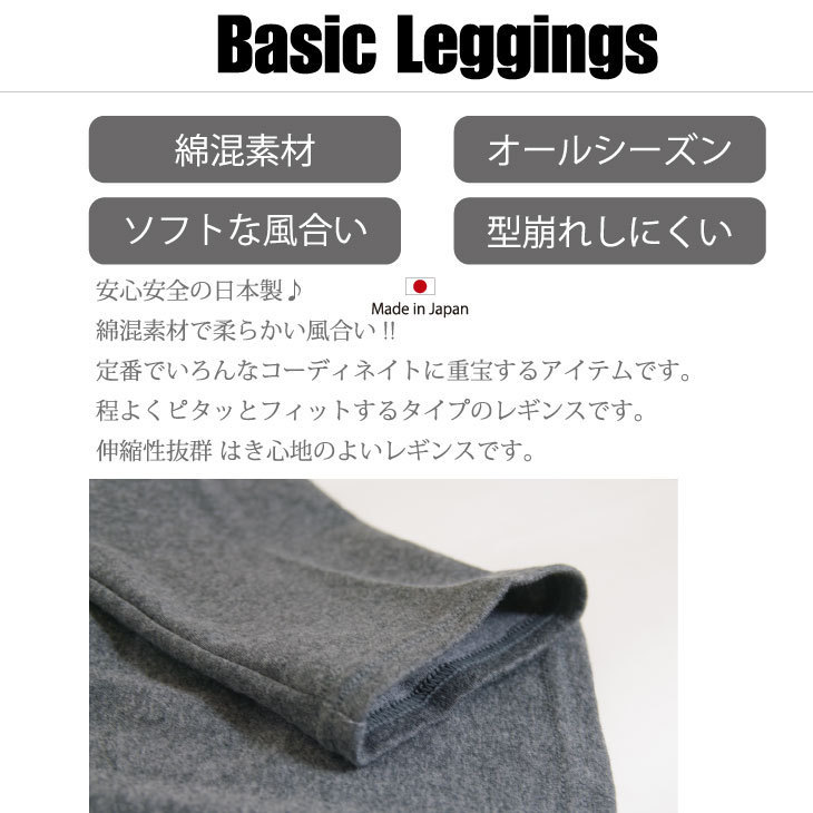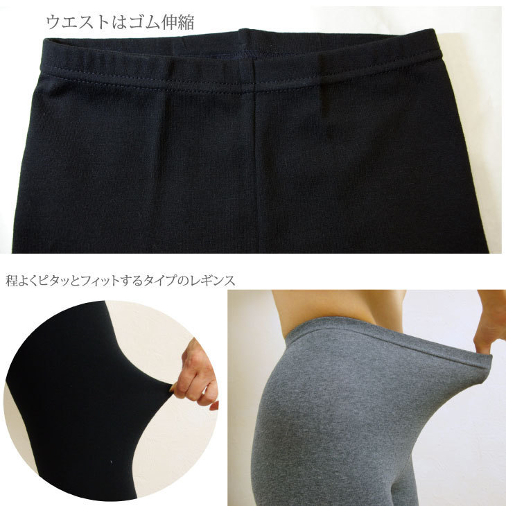 日本製 レギンス レディース JM-L 5分丈 綿混 無地 スパッツ 黒 新品