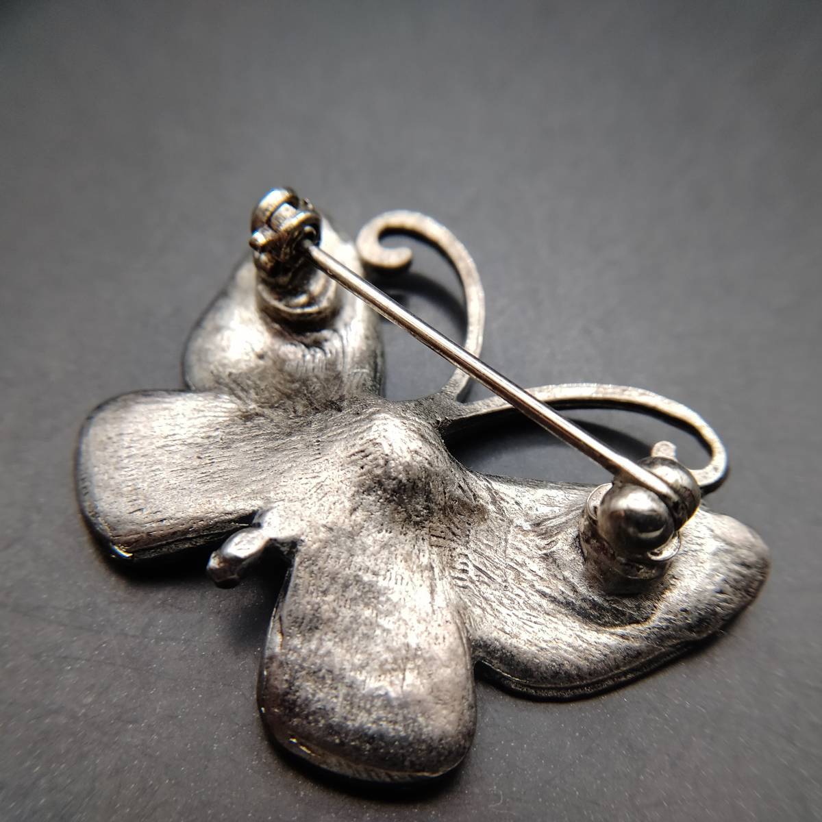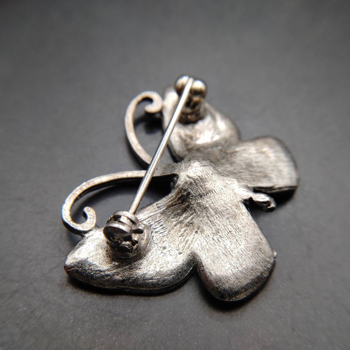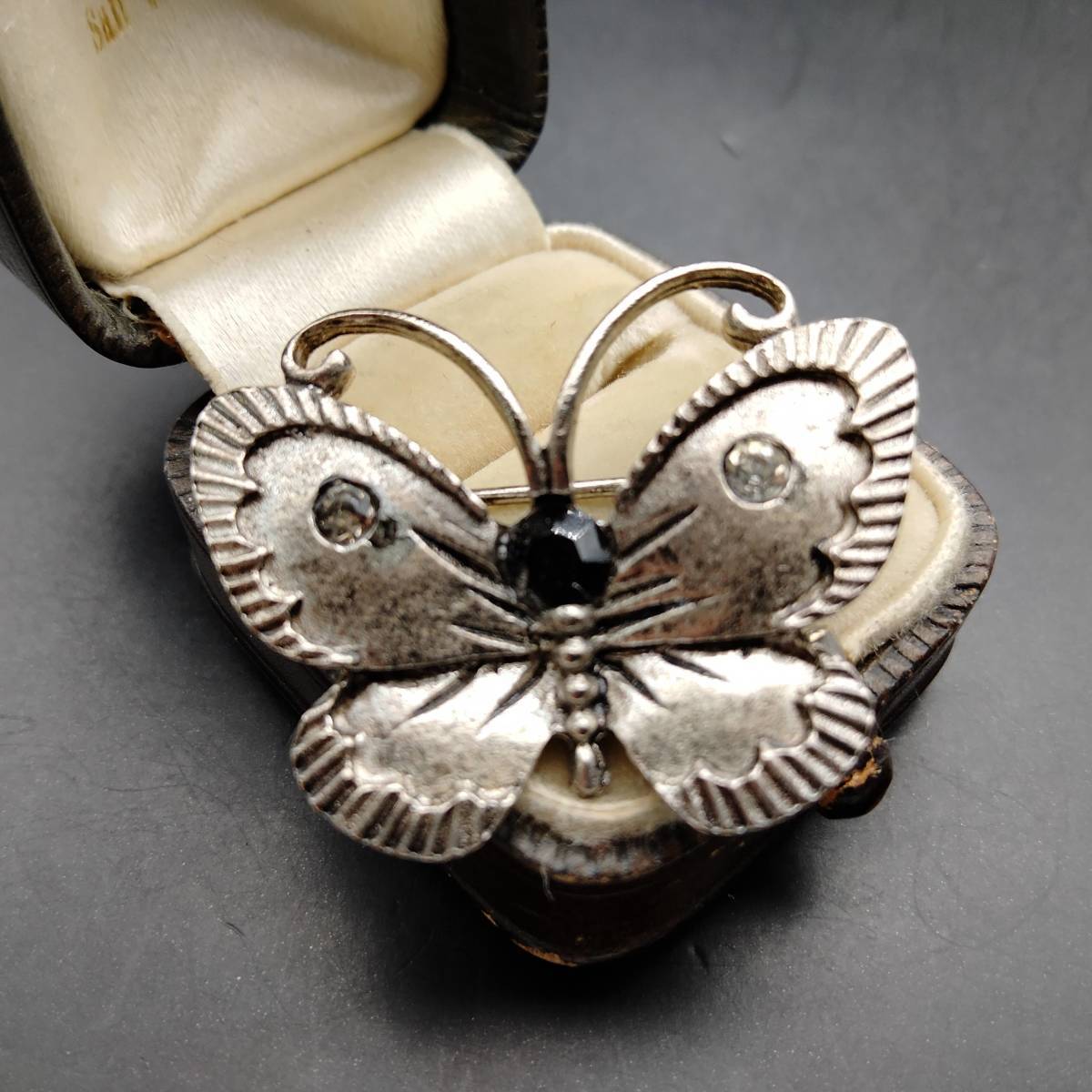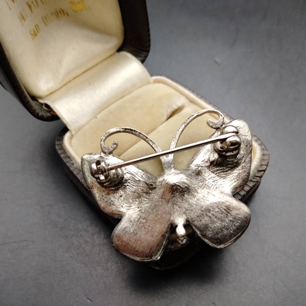 蝶々 昆虫 彫刻 オニキスカラー ストーン シルバートーン ビンテージ ブローチ 昭和レトロ コスチューム ジュエリー 輸入 7S-I