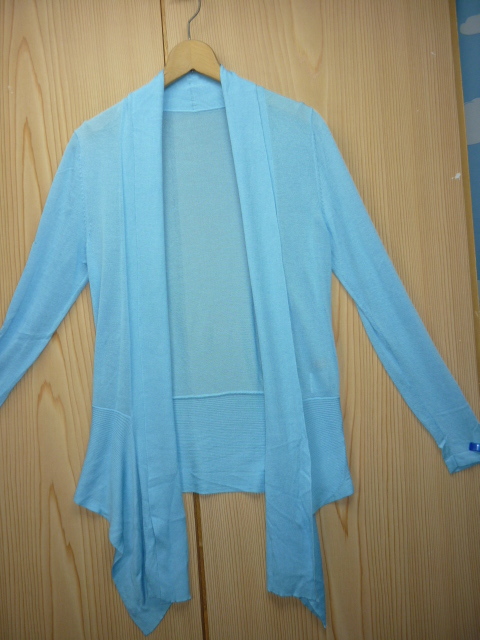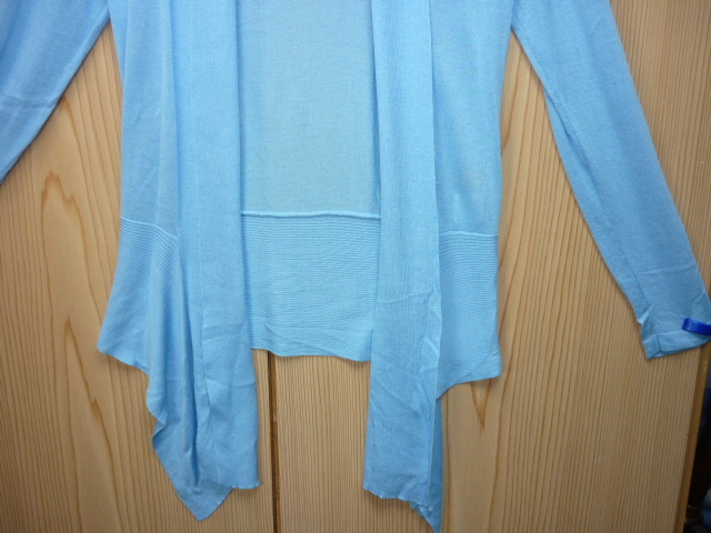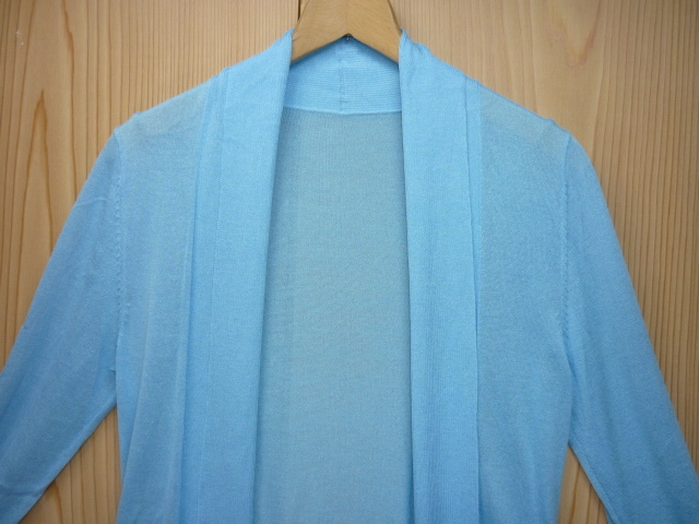U84★美品★Vicino a Lei (ヴィチーノアレイ)・サイズ38【ボタンなし・羽織りニットカーディガン】ブルー(水色)系★商品詳細は記載文を・
