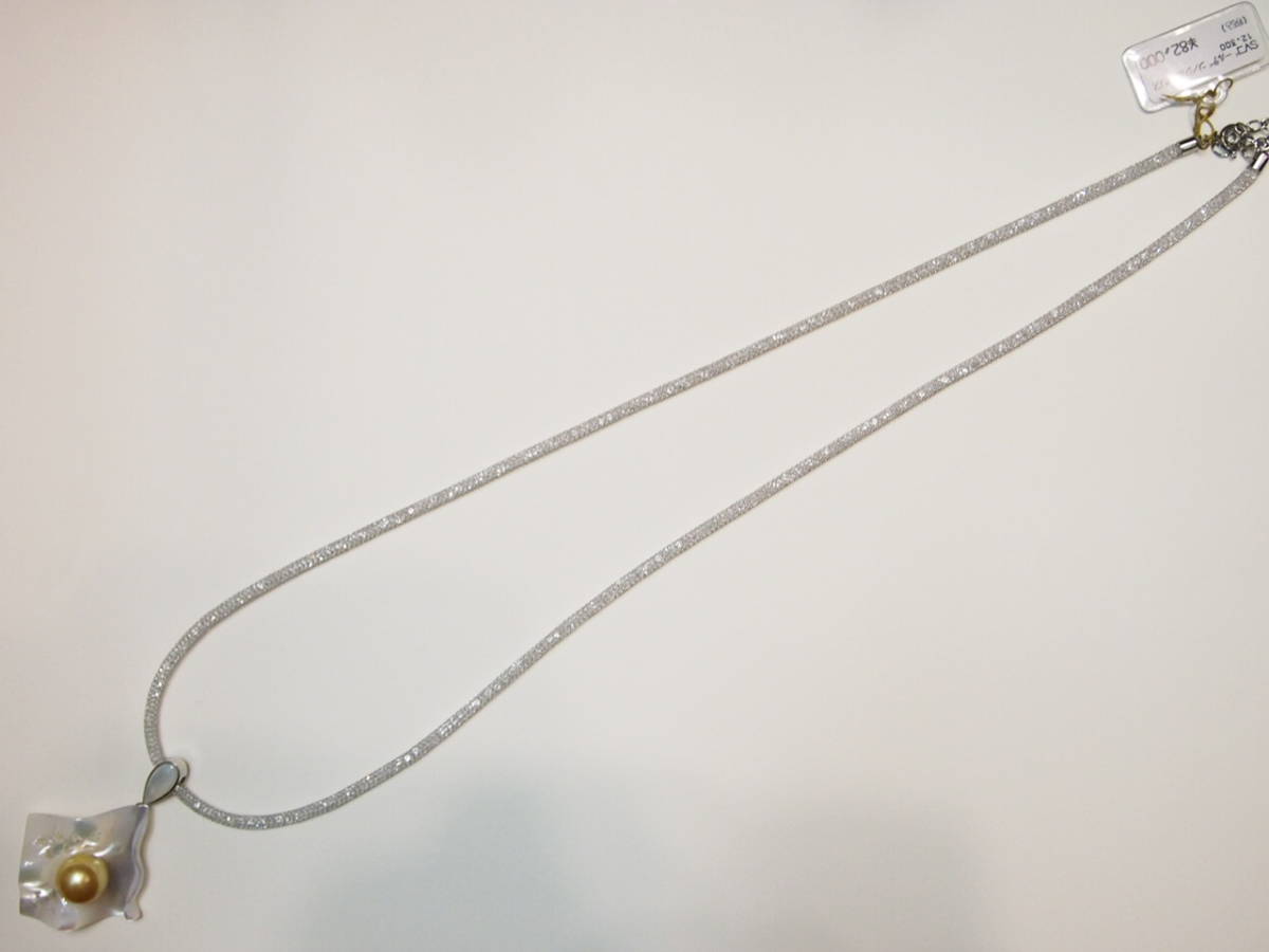 シルバー925製 12.3mm 南洋ゴールデン パール 白蝶シェル デザイン ロング ペンダント ネックレス です。