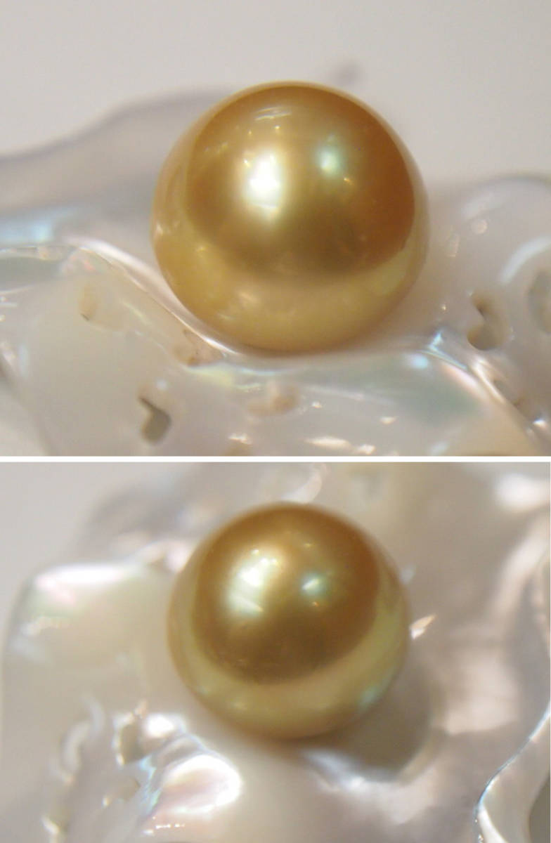 使用され得ている南洋ゴールデンパールは、12.3mm の大きさで深いゴールドの色味。
