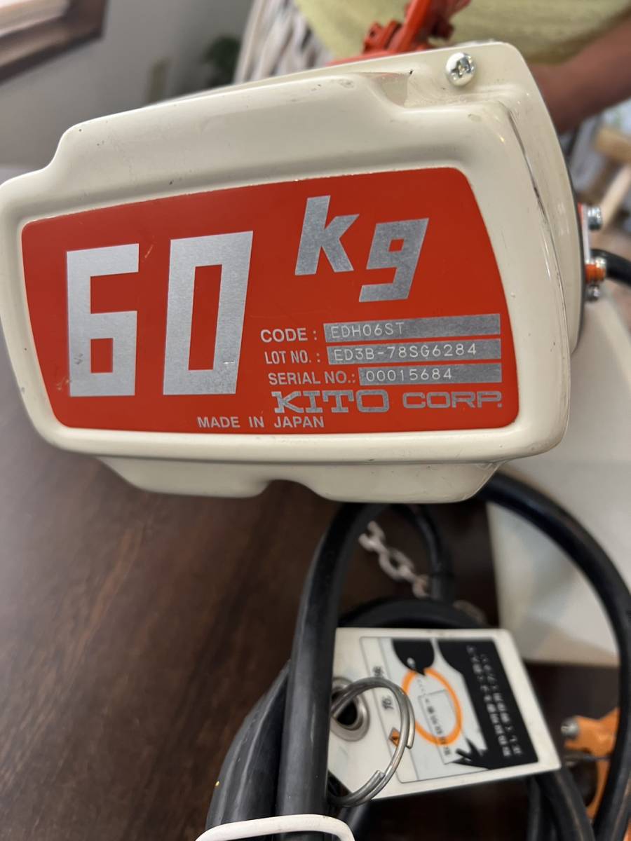 キトーセレクト 電気チェーンブロック EDH06ST ツリテクミ付 2速形 荷重60㎏ 単相100V  揚程3m 【中古品】 愛知県発