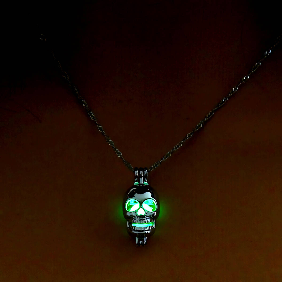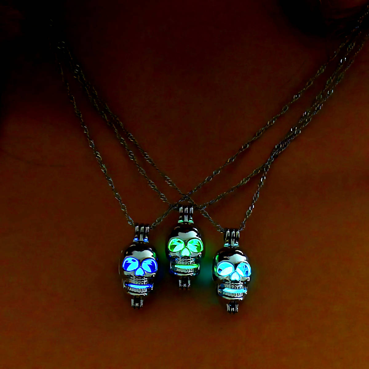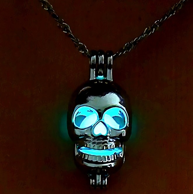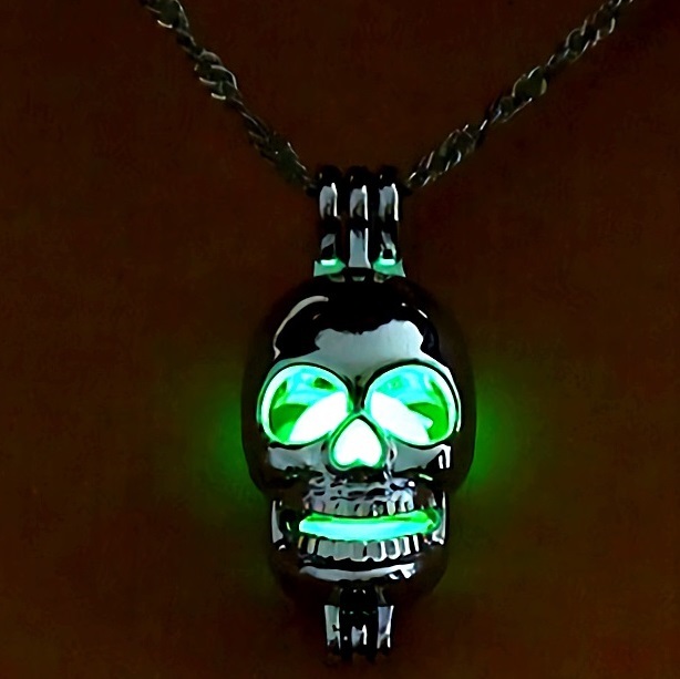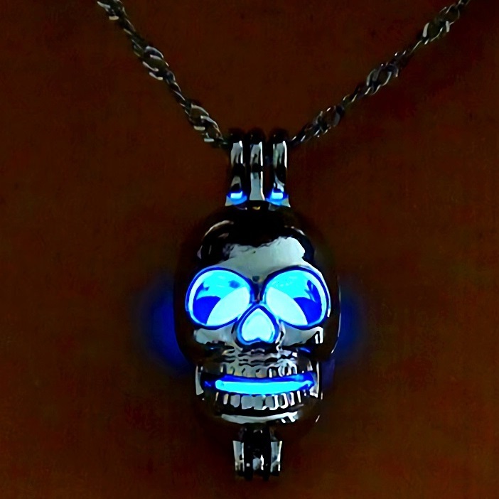 新品★送料無料★暗闇発光 3色水緑青 光る骸骨ドクロ プラチナ仕上 925シルバーネックレス 誕生日プレゼント旅行連休春ギフト国内発送