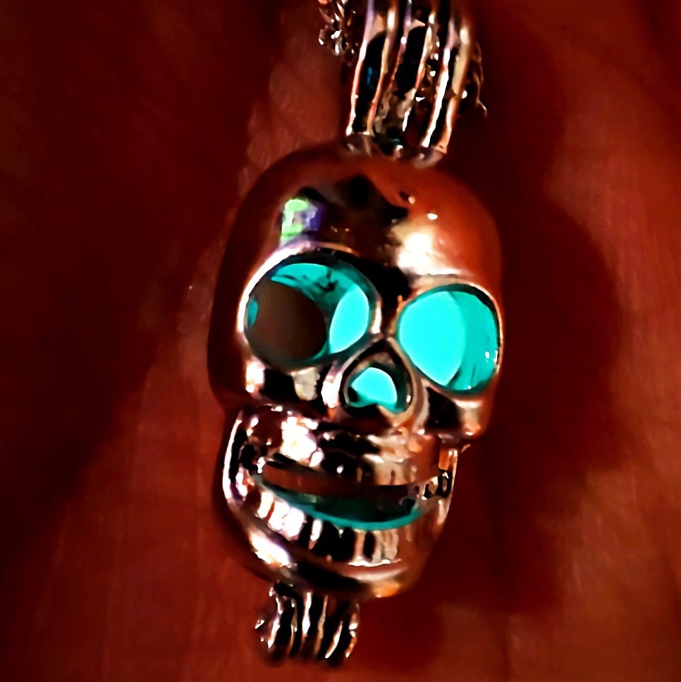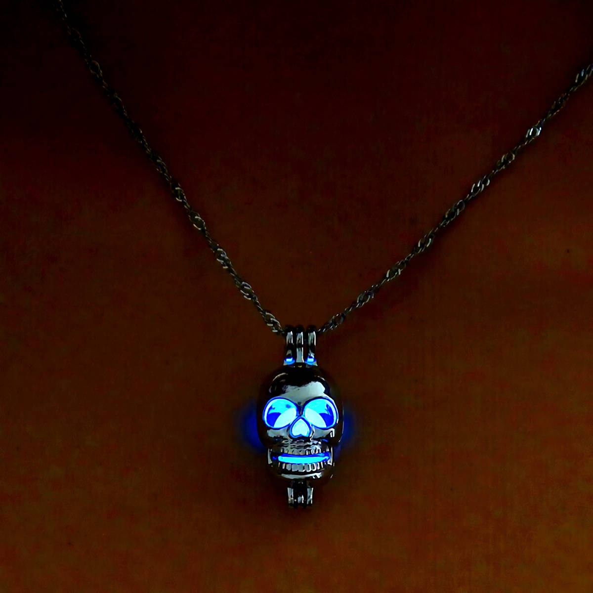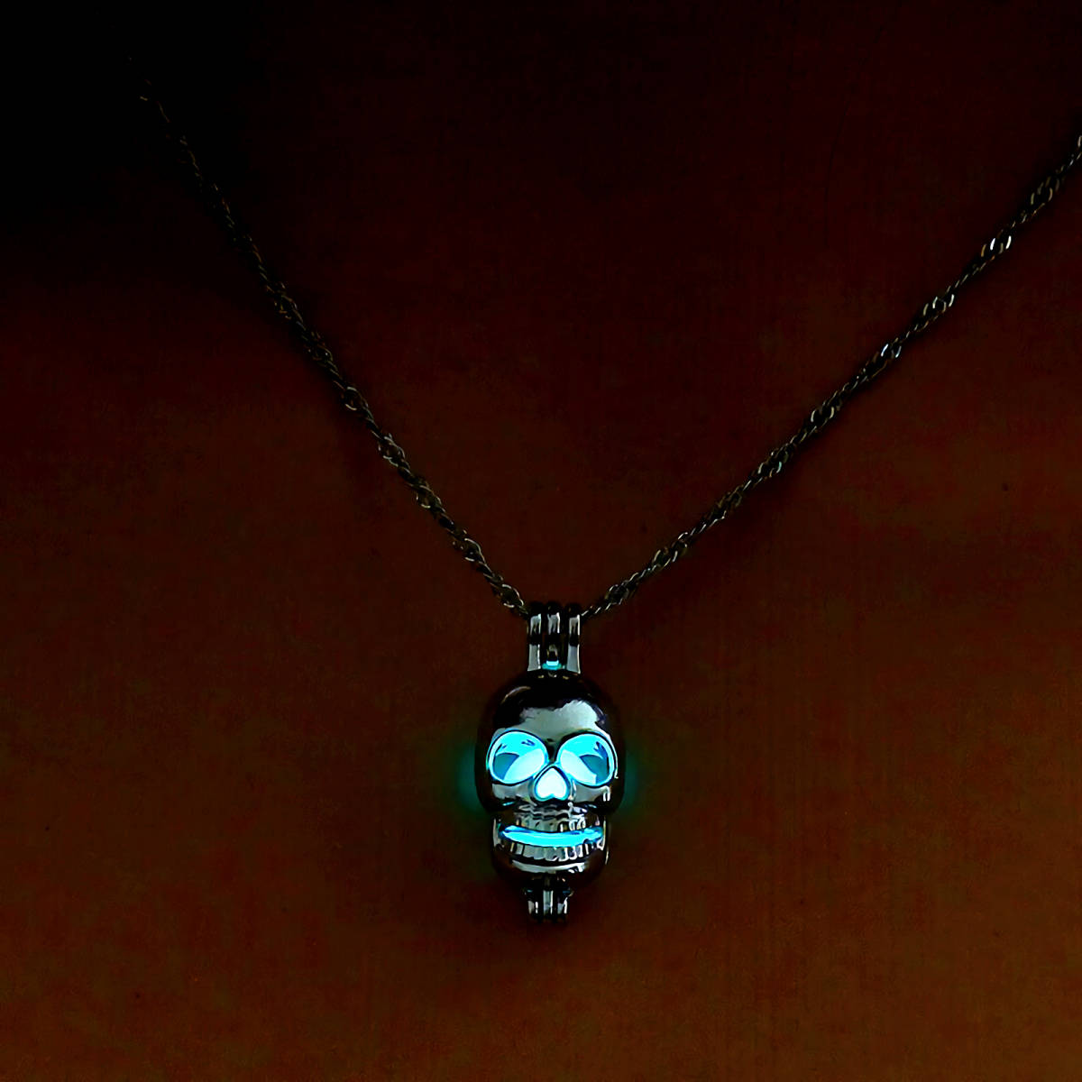 新品★送料無料★暗闇発光 3色水緑青 光る骸骨ドクロ プラチナ仕上 925シルバーネックレス 誕生日プレゼント旅行連休春ギフト国内発送