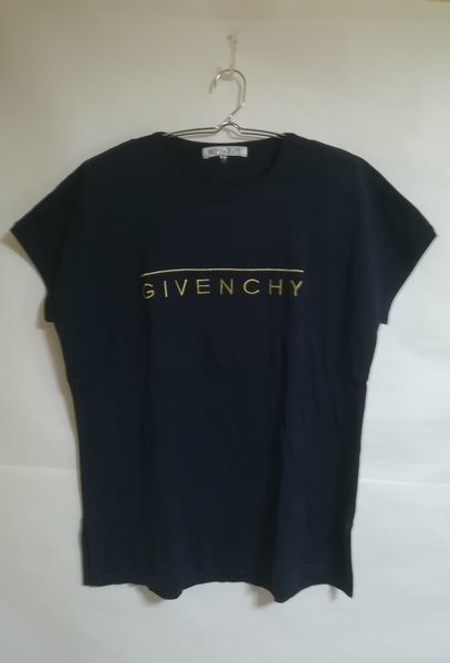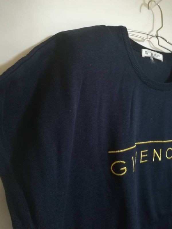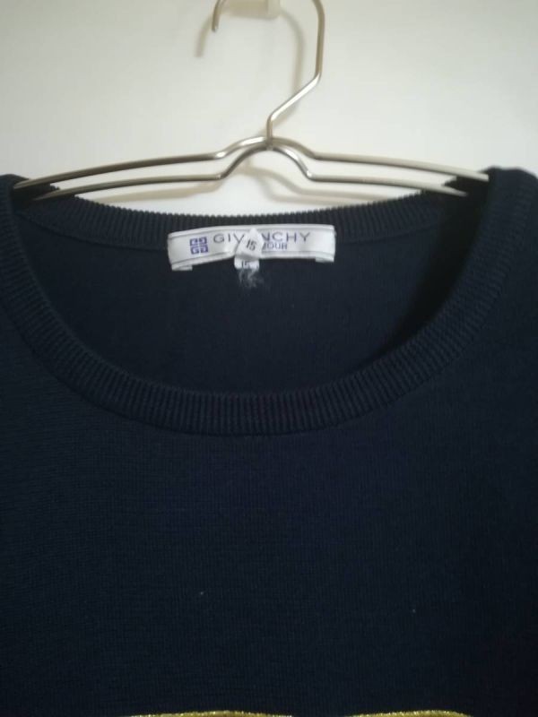 GIVENCHY 金ロゴ ニット 半袖 肩パッド入り 半袖 大きいサイズ サイズ15号 黒 ブラック