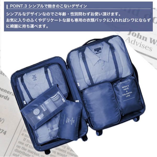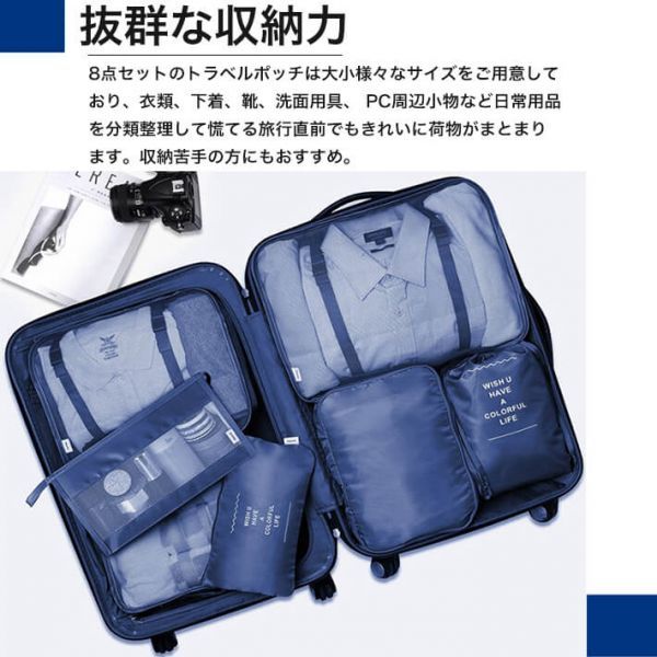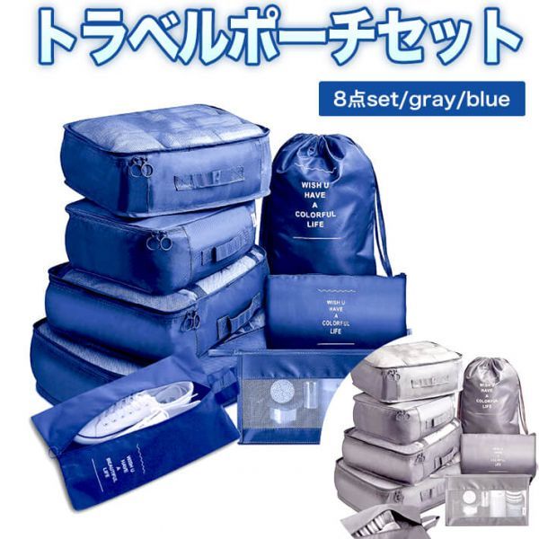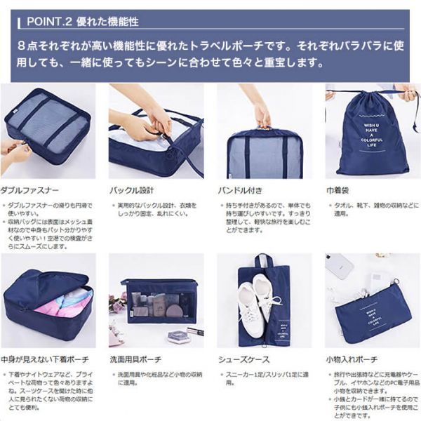 トラベルポーチ 8点セットでスッキリ整理できて、荷造りを楽になる。