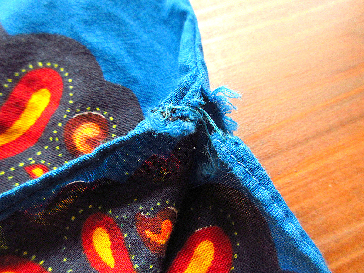 数カ所に汚れあり、裾サイドのスリットに約1cm程のダメージ、9cm程のリペア(手縫い)あり