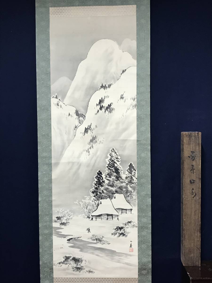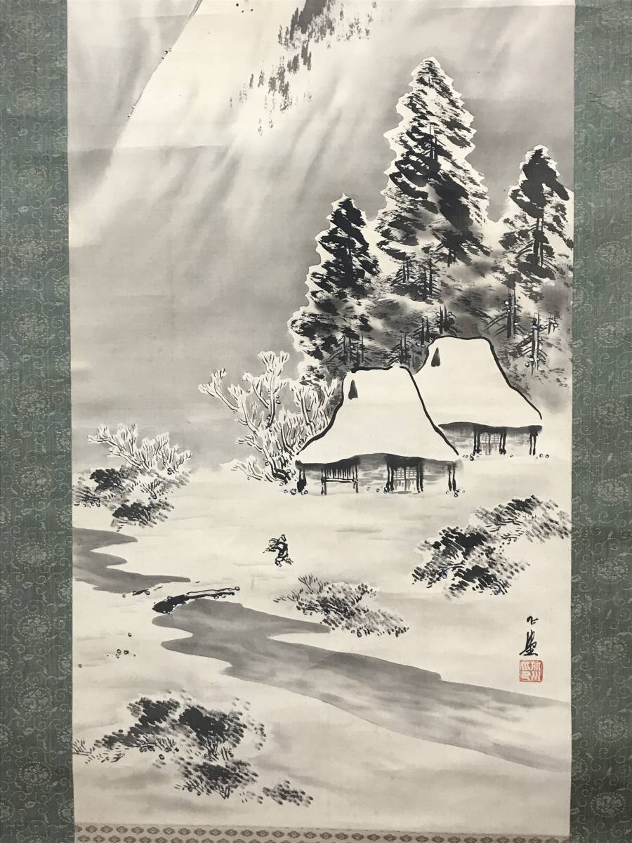 真作/加川正堂/雪景山村図/山水図//掛軸☆宝船☆AB-903