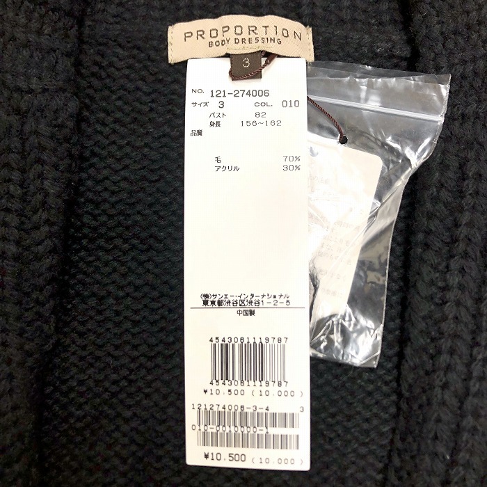 商品タイトル | 【新品】PROPORTION BODY DRESSING - 3 M レディース ニットテーラードジャケット カーディガン 無地 長袖 ウール×アクリル ブラック 黒 |