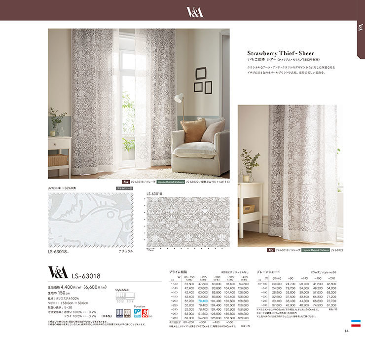 リリカラのウィリアムモリス いちご泥棒シアー レースです   生地のみの出品となります。