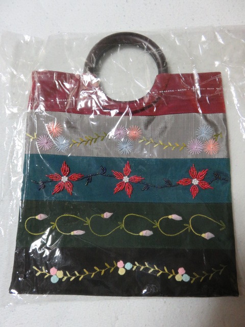 和風 手さげバッグ トートバッグ サイズ275-285㎜ (取っ手部含まず) マグネット 刺繍柄 ビース柄 未開封 未使用 を出品します。