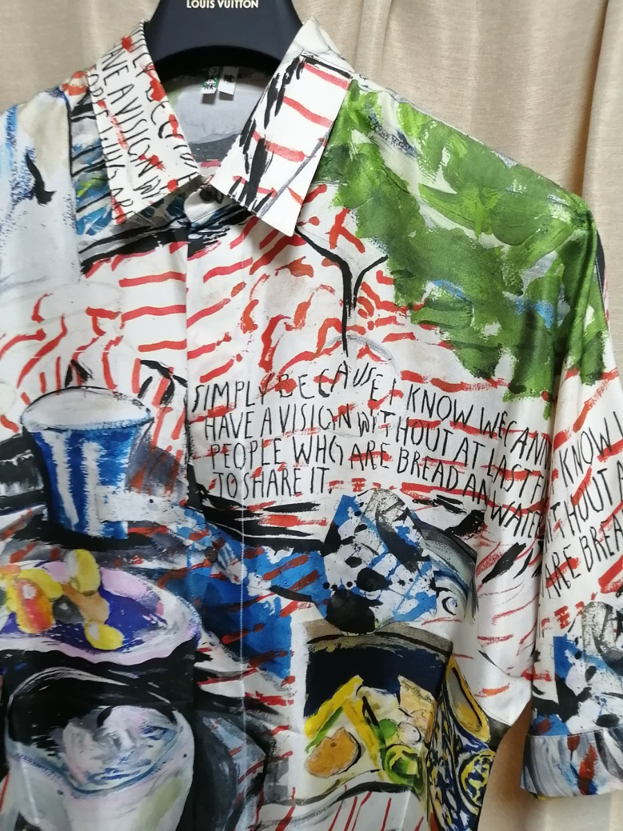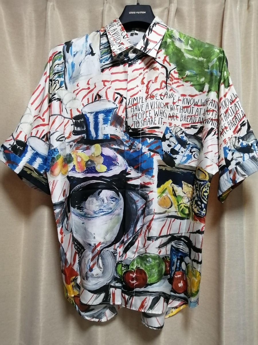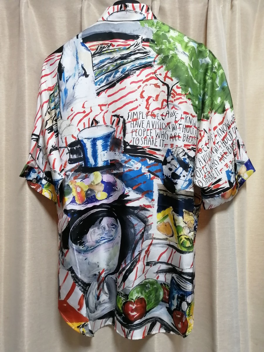 全面シルクDIOR×レイモンドペティポン現代アート芸術的絵画最高傑作入手不可ディオール光沢シャイニー光り輝く半袖シルクシャツ