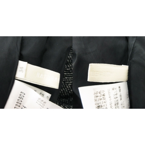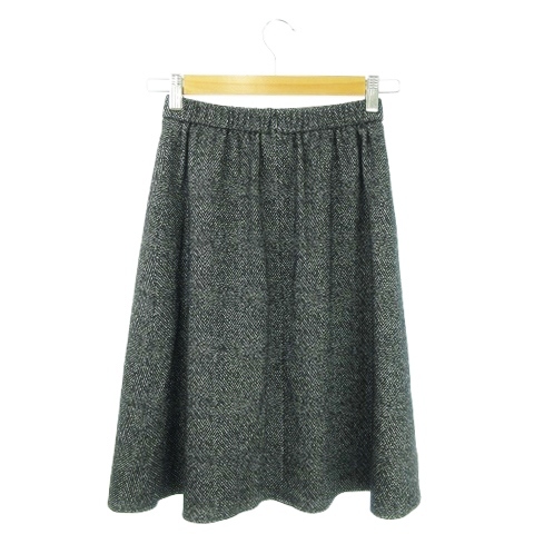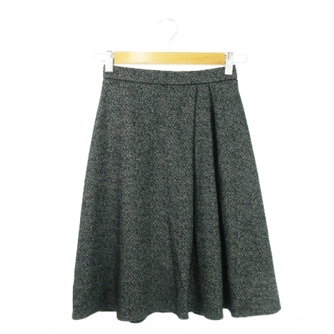 ナチュラルビューティー NATURAL BEAUTY スカート フレア ひざ丈 ウール ストレッチ タック ヘリンボーン 小さいサイズ 34 黒 ブラック
