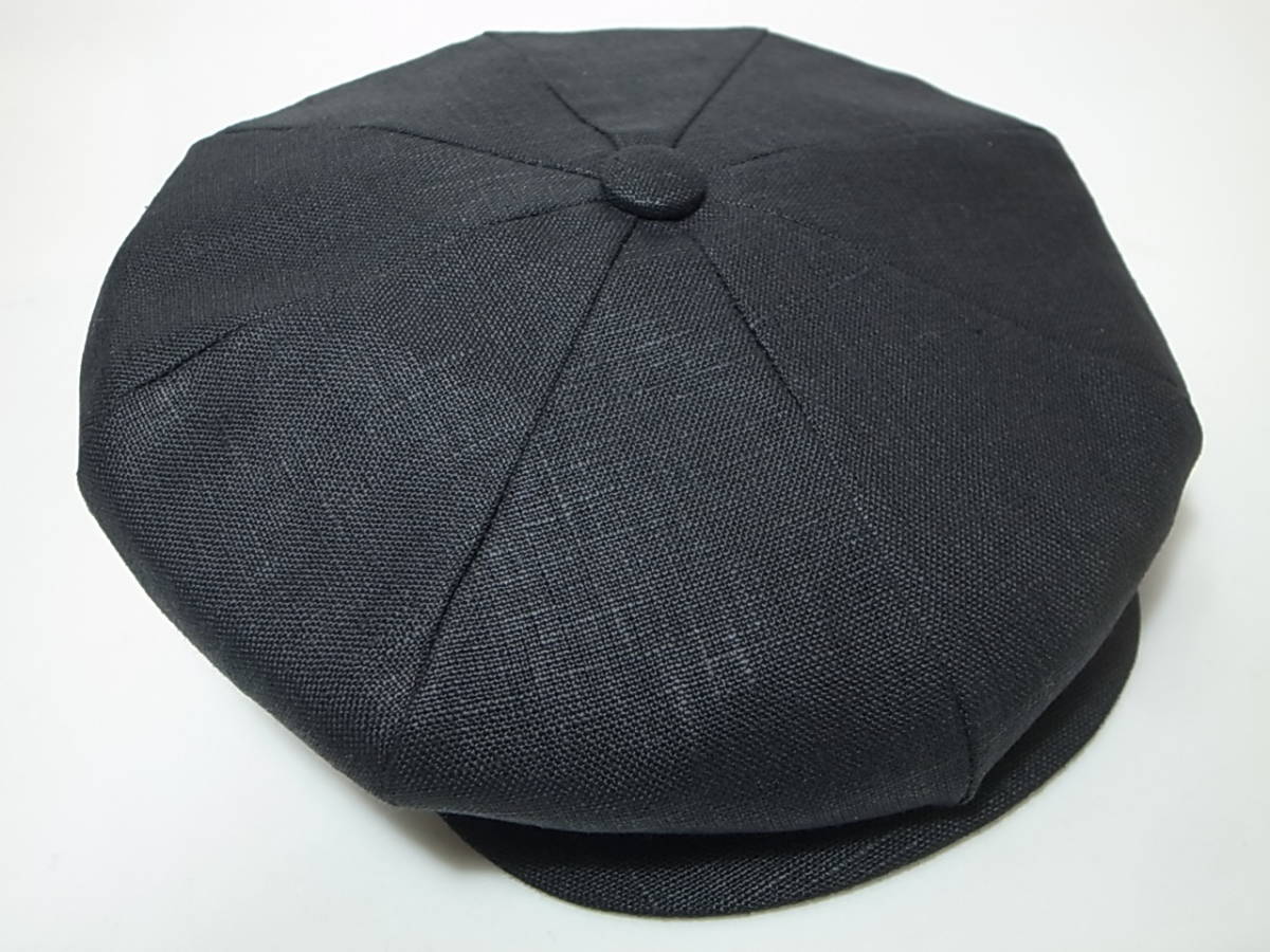 New York Hat Linen Newsboy キャスケット、カラー:ブラック、サイズ:XL(60.5cm前後程度)、新品です。素材は100%リネンです。1982年創業の老舗帽子ブランドのニューヨークハット社、創業以来世界中で安定した人気を得ているブランドです。その名の通り、昔のアメリカの新聞配達員が被っていたようなクラシカルなスタイルのNewsboy。ツバには芯が入っており、ツバ上部とクラウンはスナップボタンで付いております。(スナップボタンは装飾的なものです)もちろん男性、女性問わず着用していただけます。New York Hatの商品を幅広く出品していますのでお時間ありましたらご覧下さい。