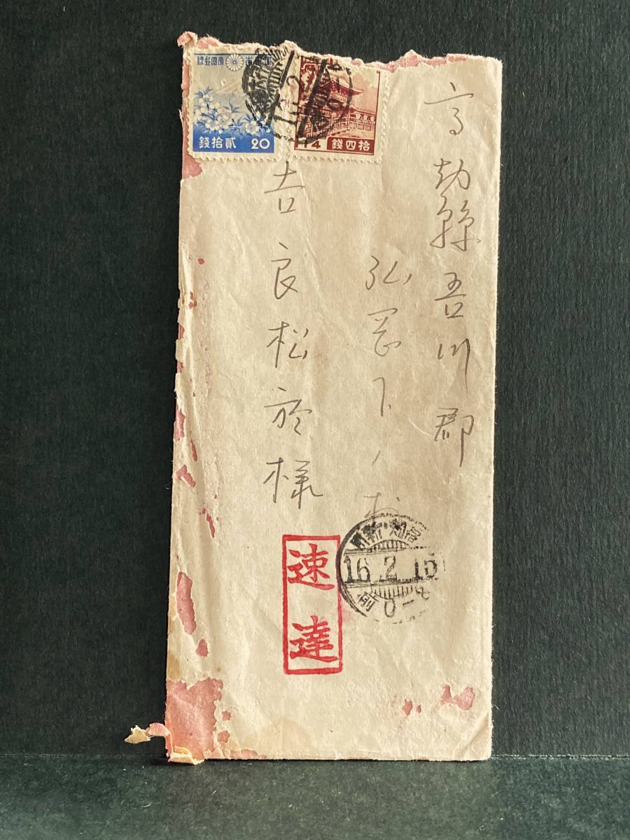 ■エンタイア 速達書状 1次富士山と桜20銭+春日大社14銭 岡山■■大■前16.2.1■ 后0-4