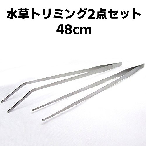 水草 48cmピンセット2本(湾曲+ストレート)トリミング ステンレス